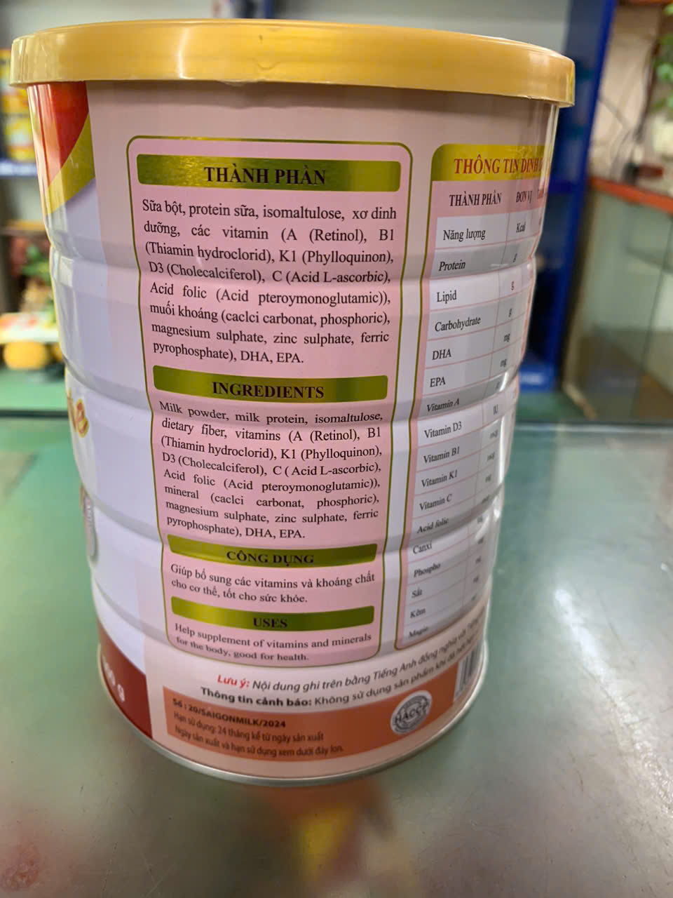1. Thành phần: Sữa bột, Whey protein, Soy protein, Maltodextrin, Sữa non, L-Lysine HCL, FOS, Canxi Nano, Taurine, Choline, DHA, ARA, Vitamin (Vitamin A, Vitamin C, Vitamin D, Vitamin E, Vitamin D3, Vitamin K2,