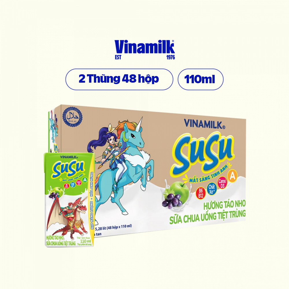 ✨Sữa chua uống hương táo nho Vinamilk Susu - Thùng 48 hộp 110ml.