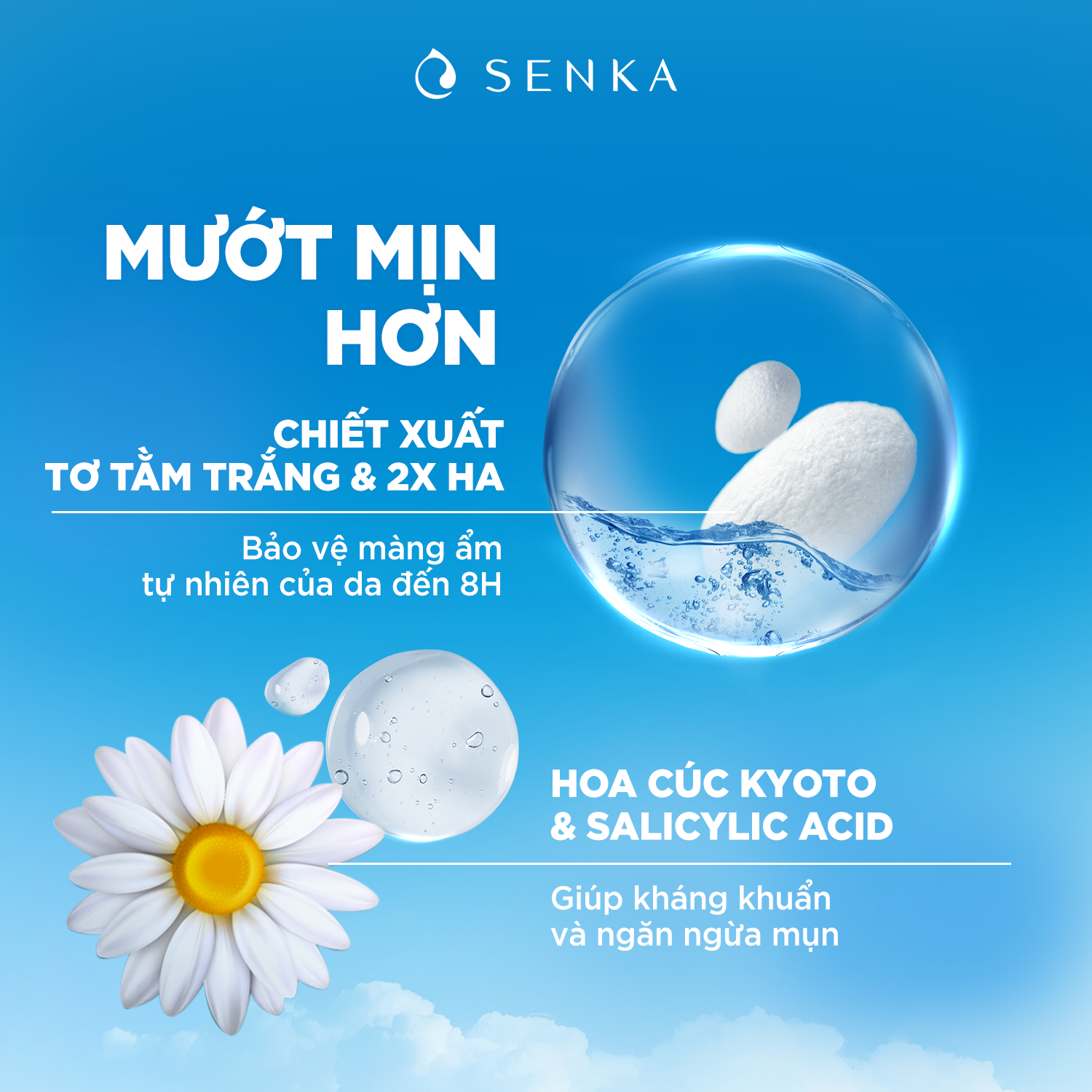 - Tinh chất tơ tằm trắng cùng với công thức gấp đôi Hyaluronic acid duy trì lớp màng dưỡng ẩm tự nhiên giúp da sáng mịn và mềm mượt Công dụng
