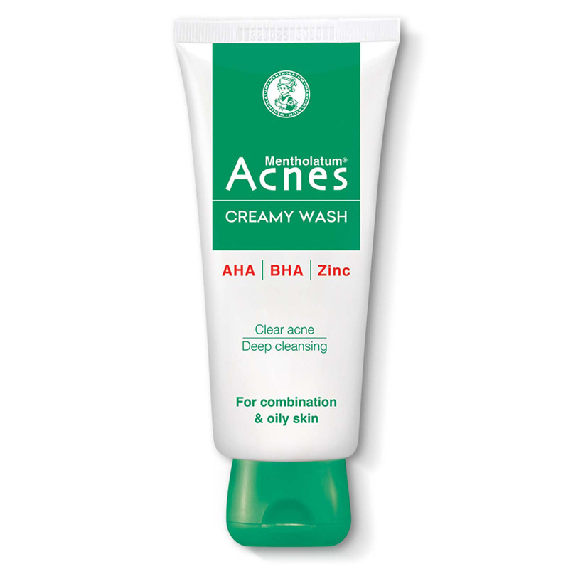 - Sữa Rửa Mặt Hàng Ngày Acnes Creamy Wash Ngăn Ngừa Mụn với công thức đột phá chứa phức hợp AHA & BHA giúp rửa sạch bã nhờn, tế bào chết, bụi bẩn tận sâu lỗ chân lông. Bên cạnh đó, Dipotassium Glycyrrhizate, Zinc Gluconate, IPMP giúp kháng khuẩn mụn, kiểm soát nhờn, ngăn ngừa hình thành mụn mới.