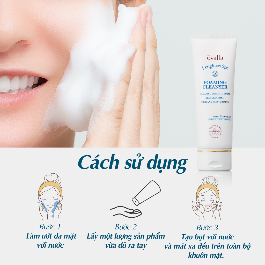 - Sữa rửa mặt Ovalla Facial Foaming Cleanser với mùi hương đặc trưng, cùng công thức độc đáo, sử dụng thành phần tự nhiên giúp tái tạo và cải thiện bề mặt da. HƯỚNG DẪN SỬ DỤNG: 1. Trước khi tiến hành rửa mặt nhớ làm sạch tay. Sau đó làm ướt toàn bộ mặt.