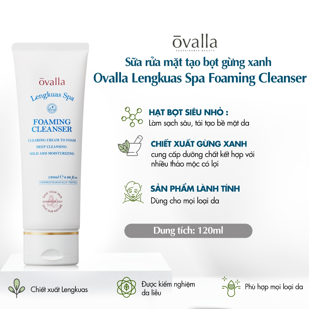- Sữa rửa mặt phù hợp cho mọi loại da, không gây kích ứng, đạt chứng nhận kiểm nghiệm lâm sàng. Dung tích: 120ml Thương hiệu: OVALLA Xuất xứ: Hàn Quốc Loại da: Mọi loại da kể cả da nhạy cảm CÔNG DỤNG SỮA RỬA MẶT OVALLA: - Lengkuas, hay còn được gọi là Blue Ginger, giúp loại bỏ hiệu quả bụi bẩn từ sâu trong lỗ chân lông, kết hợp với chiết xuất các loại thảo mộc khác giúp tăng sức sống và cung cấp dinh dưỡng cho da.