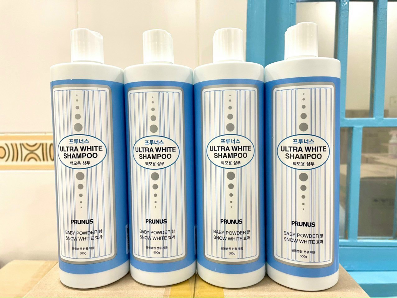 Sữa Tắm Siêu Trắng Lông Chó Mèo Prunus Ultra White Shampoo 500g - Sản phẩm nhập khẩu trực tiếp Hàn Quốc - Giữ và làm trắng lông cún - Thích hợp với cún lông sáng