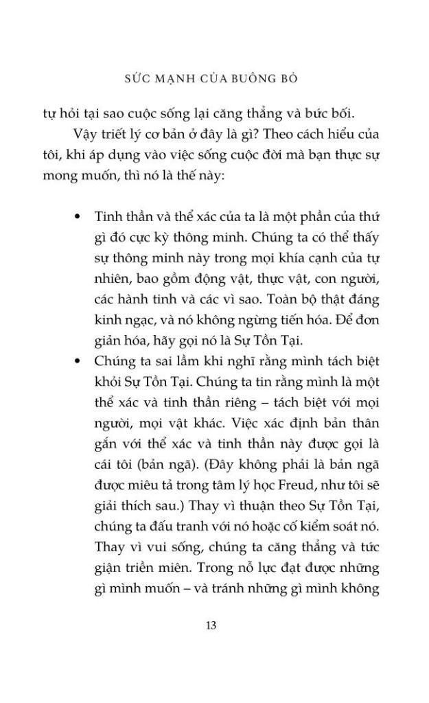 Cuốn sách này thổi tia hy vọng ấy lên thành ngọn lửa, cho nó một bệ đỡ vững vàng, rồi dẫn dắt từng đường đi nước bước để ta buông những điều đang kìm hãm và để đời cất cánh. Tại sao cần buông bỏ? Buông bỏ bằng cách nào? Hàng nghìn năm tri thức tinh thần và một trăm năm tâm lý học hiện đại đã đúc kết thành một hệ thống những bài thực hành trực diện, đơn giản và hiệu quả trong Sức mạnh của buông bỏ.