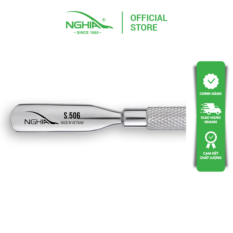 Sủi Da S506 - Kềm Nghĩa là dụng cụ hỗ trợ chăm sóc móng có 1 đầu sủi dùng để đẩy tế bào chết, làm bong tróc các vùng da thừa thiết kế kiểu dáng phù hợp với bàn tay người Châu Á 1 đầu nhọn, 1 đầu bầu, cán cầm tròn có vân.Chất liệu chính của tất cả các dòng sủi da Kềm Nghĩa đều là thép không gỉ nên không bị gỉ sét khi chạm nước và hấp tiệt trùng. Đặc điểm nổi bật Chất liệu Thép không gỉ (Inox), an toàn cho người dùng. Trọng lượng  33 gr  Thiết kế Thiết kế kiểu dáng phù hợp với bàn tay người Châu Á. 1 đầu nhọn, 1 đầu bầu, cán cầm tròn có vân. Sản phẩm được sản xuất theo chuẩn ISO 9001 - 2015 . Kích thước 147 (+/-1) x 8,0 (+/-0,5) x 6,2 (+/-0,5) mm Thương hiệu Kềm Nghĩa Được người tiêu dùng và thợ chuyên nghiệp ưu tiên lựa chọn hơn 20 năm, đạt được nhiều giải thưởng như: Hàng Việt Nam chất lượng cao, Thương hiệu quốc gia.  Mô tả:    Rất nhiều khách hàng đã hỏi Kềm Nghĩa về công dụng của sủi da. Sủi da là dụng cụ hỗ trợ chăm sóc móng có 1 đầu sủi dùng để đẩy tế bào chết trên móng, làm bong tróc các vùng da thừa quanh móng để kềm cắt da có thể cắt dễ dàng hơn. Bên cạnh đó sủi da còn được thiết kế thêm 1 đầu lấy khóe để lấy đi đất, cát, bụi bẩn bám bên trong kẽ móng. Sủi da thường được thợ chăm sóc móng chuyên nghiệp lựa chọn sử dụng vì tính tiện dụng và hỗ trợ cao cho việc làm móng. Tuy nhiên, hiện nay khách hàng cá nhân cũng đã biết nhiều đến công dụng của sủi da và mua về sử dụng tại nhà.    Sản phẩm S.506 là dòng sủi da được ưa chuộng nhất vì thiết kế hai đầu dễ sử dụng. Đặc biệt, chất liệu chính của tất cả các dòng sủi da Kềm Nghĩa đều là thép không gỉ nên không bị gỉ sét khi chạm nước và hấp tiệt trùng. Lưu ý sử dụng:    Công dụng sản phẩm: dùng để sủi da (đẩy da), lấy đất, bụi bẩn ở khóe.     Cách bảo quản sản phẩm :   - Trước khi sử dụng nên dùng cồn khử trùng.  - Sau khi sử dụng lau lại bằng cồn rồi bỏ vào bao bì để bảo quản.  - Để nơi khô ráo và tránh xa tầm tay trẻ em.  - Hãy sử dụng riêng sủi cá nhân để bảo vệ sức khỏe.
