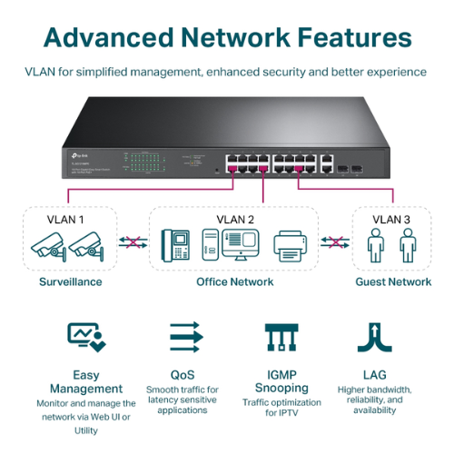 Thông số kỹ thuật: 18-Port Gigabit with 16-Port PoE+ Easy Smart Switch TP-LINK TL-SG1218MPE - 16 cổng Gigabit RJ45 hỗ trợ PoE+, 2 cổng Gigabit RJ45 không hỗ trợ PoE và 2 khe cắm SFP Combo Gigabit. - Công suất PoE lên đến 250W, phù hợp cho các hệ thống giám sát doanh nghiệp nhỏ và vừa. - Tính năng ưu tiên cổng đảm bảo chất lượng cho các ứng dụng nhạy cảm như giám sát video. - Khôi phục tự động PoE tự động khởi động lại các thiết bị PoE bị mất kết nối hoặc không phản hồi. - Quản lý công suất thông minh bảo vệ switch khỏi tình trạng quá tải. - Chất lượng Dịch vụ (QoS) đảm bảo lưu lượng mạng mượt mà cho các ứng dụng nhạy cảm với độ trễ. - IGMP Snooping tối ưu hóa việc phân phối lưu lượng đa phương tiện, như IPTV.