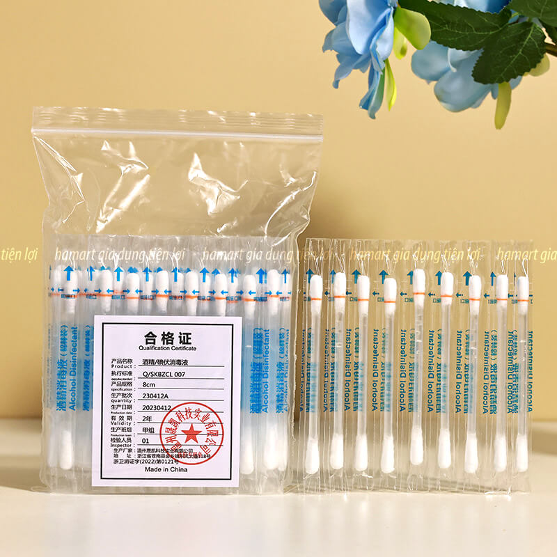 Tăm bông y tế tẩm cồn và i-ốt đỏ khử trùng 2 trong 1 là sản phẩm tiện dụng, kết hợp giữa dung dịch sát khuẩn (Povidone-Iodine hoặc cồn) và đầu bông mềm mại. Thiết