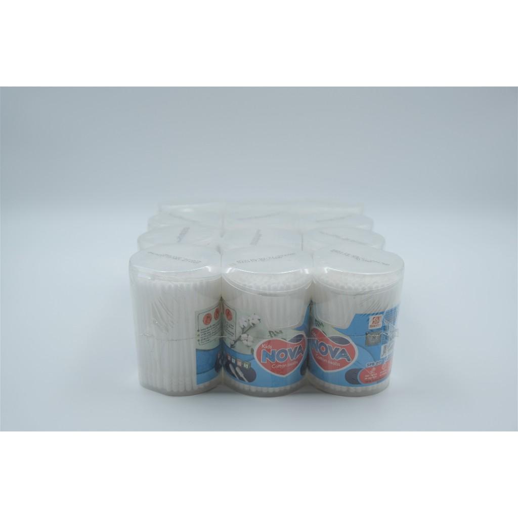 Tăm bông vệ sinh NOVA hộp vát size M – thiết kế tiện lợi, dễ rút, đầu bông mềm mịn, không rụng sợi, an toàn cho cả người lớn và trẻ nhỏ. Mỗi hộp 160 que, combo 12 hộp tiết kiệm cho gia đình, spa, salon hoặc nhà thuốc.