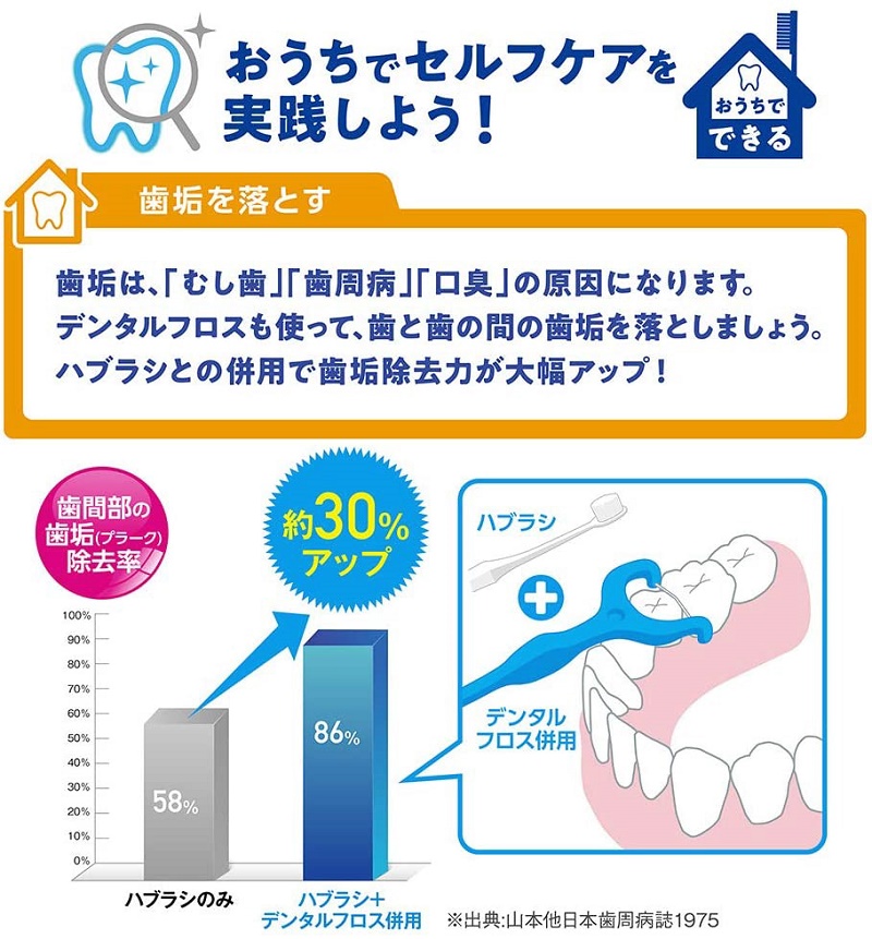 - Sáu sợi chỉ mảnh (sợi chỉ đặc biệt) sắp xếp theo hình dải luồn vào kẽ răng, cặn thức ăn và mảng bám dính lần lượt được loại bỏ một cách nhanh chóng & an toàn. Ngoài ra, đầu tăm có hình dáng độc đáo giúp dễ dàng loại bỏ các mảnh vụn thức ăn khó lấy ra như mặt sau của răng.