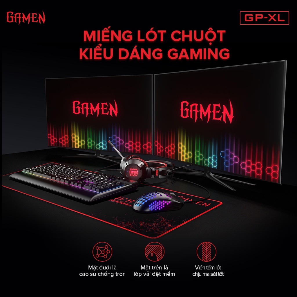 Tấm lót chuột Gamen GP-XL bàn di chuột kiểu dáng gaming kích thước lớn 70 x 30 cm ️TÍNH NĂNG SẢN PHẨM:
