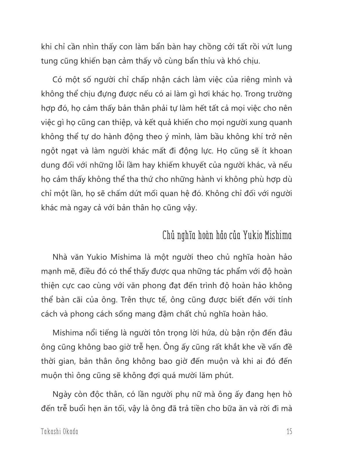 - Nhà văn Nhật Bản Natsume Soseki mắc chứng hoang tưởng bị hại. Vậy khi thiên thần và ác quỷ luôn cùng tồn tại, bạn phải làm sao để đối mặt với con quỷ bên trong con người m.ình? Câu trả lời sẽ được giải đáp trong “Tâm lý học lập dị”. Tựa sách đã chiếm vị trí hàng đầu trong bảng xếp hạng sách tâm lý học phổ thông của Amazon Nhật Bản suốt nhiều năm liền. Từ việc phân tích những thói quen kỳ quặc xuất hiện trong hành vi hằng ngày của con người, nội dung sách sẽ giúp chúng ta khám phá và hiểu về “một bản thân khác” ẩn sâu trong cơ thể, đồng thời tìm lại lối sống cân bằng để không đánh mất nền tảng tinh thần của chính m.ình. Chỉ khi bình tĩnh chấp nhận các trạng thái TÂM LÝ LẬP DỊ và điều chỉnh một cách có ý thức, bạn mới có thể tồn tại mạnh mẽ trong thời đại cạnh tranh khốc liệt này. Sức mạnh của chúng ta nằm ở việc nỗ lực chữa lành bản thân sau thương tổn, không ngại thể hiện nội lực và tình yêu ẩn giấu bên trong m.ình. VỀ TÁC GIẢ: Takashi Okada sinh năm 1960 tại tỉnh Kagawa. Ông là một bác sĩ tâm lý, tiến sĩ y khoa và cũng là một nhà văn. Ông bỏ học khoa triết học của Đại học Tokyo, chuyển qua học và tốt nghiệp ngành Y khoa ở Đại học Kyoto. Ông tham gia nghiên cứu tại khoa Sinh học thần kinh, khoa Khoa học Não bậc cao, khoa Tâm thần, khoa Sinh lý bệnh Não tại cùng một trường đại học. Là một bác sĩ lâm sàng, ông phải đối mặt với cuộc khủng hoảng tâm lý của con người hiện đại. Ông là tác giả của nhiều tựa sách như: “Rối loạn nhân cách ranh giới”, “Hội chứng Asperger”, “Trầm cảm và rối loạn tâm trạng”, “Tại sao con người không thể ngủ?”,…