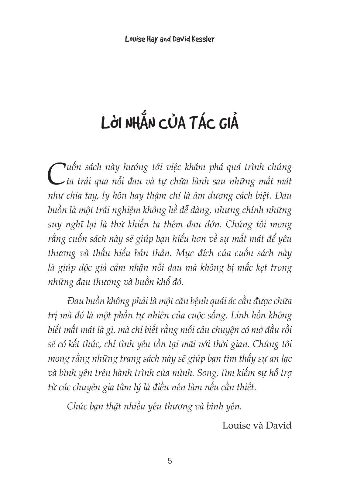 Bạn sẽ dần thoát được nỗi đau này nhanh chóng cho dù là cuộc chia tay đau đớn, cuộc ly hôn tồi tệ hay cái chết đau thương nhất. Không phải né tránh hay chạy trốn nỗi đau thay vào đó là để bản thân trải qua và cho phép m.ình sống cuộc đời mới với tình yêu thương, thay vì nỗi bi ai.