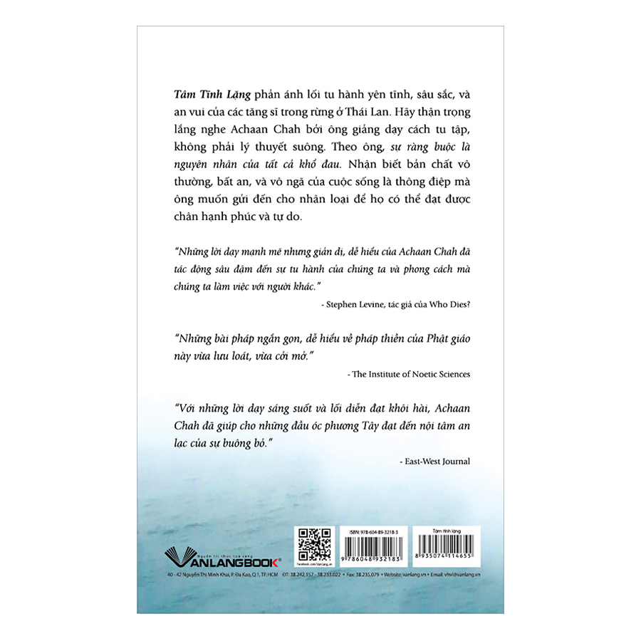 Tâm Tĩnh Lặng Tâm Tĩnh Lặng phản ánh lối tu hành yên tĩnh, sâu sắc, và an vui của các tăng sĩ trong rừng ở Thái Lan. Hãy thận trọng lắng nghe Achaan Chah bởi ông giảng dạy cách tu tập, không phải lý thuyết suông. Theo ông, sự ràng buộc là nguyên nhân của tất cả khổ đau. Nhận biết bản chất vô thường, bất an, và vô ngã của cuộc sống là thông điệp mà ông muốn gửi đến cho nhân loại để họ có thể đạt được chân hạnh phúc và tự do. “Những lời dạy mạnh mẽ nhưng giản dị, dễ hiểu của Achaan Chah đã tác động sâu đậm đến sự tu hành của chúng ta và phong cách mà chúng ta làm việc với người khác.”