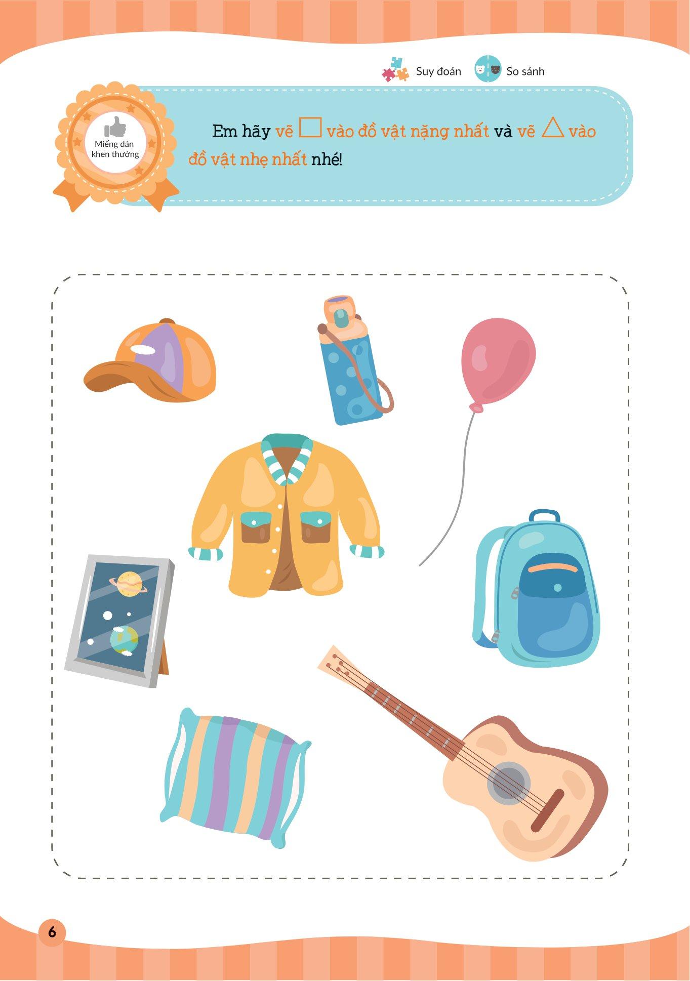 - Gần 250 hình dán thực hành và hình dán phần thưởng vừa hỗ trợ các em dễ dàng tiếp thu kiến thức, vừa khích lệ tinh thần các em, giúp kích thích trí thông minh vượt trội.