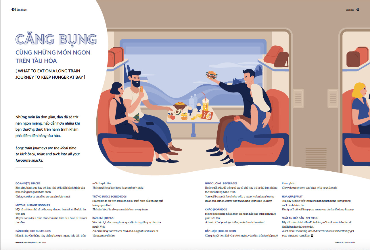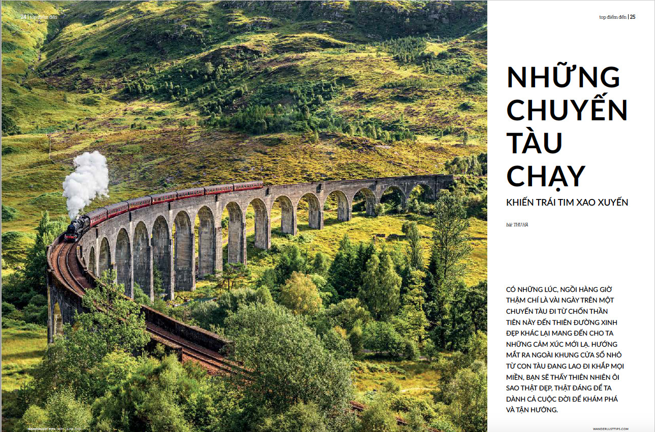 Thân gửi Quý bạn đọc thân thiết của Tạp chí Wanderlust Tips! “Tu tu, xình xịch”, âm thanh không chỉ khiến ta mường tượng về đoàn tàu dài mà còn gợi nhớ thời thơ ấu cùng ba mẹ khám phá mọi miền. Chuyến tàu chở hàng hóa qua lại, chở người đi quanh và chở cả niềm vui, tiếng cười của du khách đến từ khắp mọi nơi. Lặng yên trong khoang tàu dần lăn bánh đi qua bao cảnh đẹp tự nhiên, hòa mình vào một xã hội thu nhỏ, đó là trải nghiệm mà máy bay, ô tô đều chẳng sánh bằng tàu hỏa. Từ sân ga, đoàn tàu lăn bánh đi qua những thắng cảnh ngoạn mục của dải đất chữ S, nào là Sa Pa tới Quảng Bình, Nha Trang, Sài Gòn và đặc biệt chẳng thể bỏ qua cung đường tàu qua đèo Hải Vân ngoạn mục. Chưa dừng lại ở lãnh thổ quê nhà, con tàu nối đuôi nhau đi từ thảo nguyên rộng lớn Mông Cổ, cung đường bi tráng xứ chùa Vàng tới châu Âu hoa lệ và cả lục địa đen huyền bí. Lúc đó chúng ta mới nhận ra, âm thanh tàu chạy vòng quanh trái đất lại thú vị đến nhường nào. Sau những ngày bế tắc tại nhà, được ghé tới Ma Rốc diệu huyền, rong chơi nơi phố cổ Hội An thơ mộng, khám phá Chiang Mai rồi lắng nghe bao chia sẻ từ chuyến đi đáng nhớ sẽ thôi thúc trái tim mau mau dịch chuyển. Ban biên tập tạp chí Wanderlust Tips!