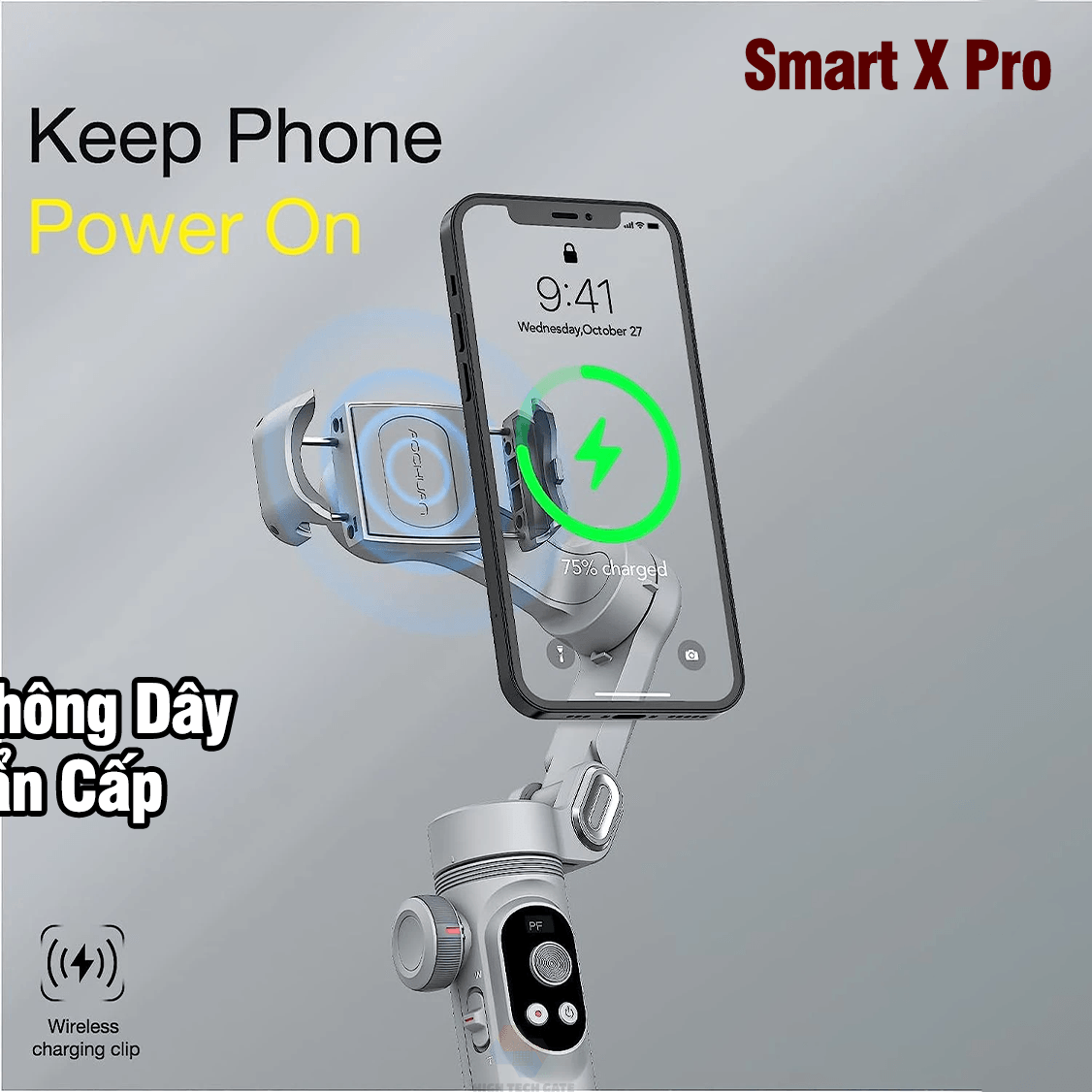 Phiên bản Smart X PRO là phiên bản nâng cấp của Smart X. Nó đi kèm với nhiều tính năng bổ sung hơn (có thể sạc không dây cho điện thoại; có núm xoay lấy nét; có màn hình OLED hiển thị; có dung lượng Pin cao hơn. PHÙ HỢP VỚI CÁC LOẠI ĐIỆN THOẠI PHỔ BIẾN THÔNG MINH Kích thước màn hình rộng từ 5.5 đến 9cm
