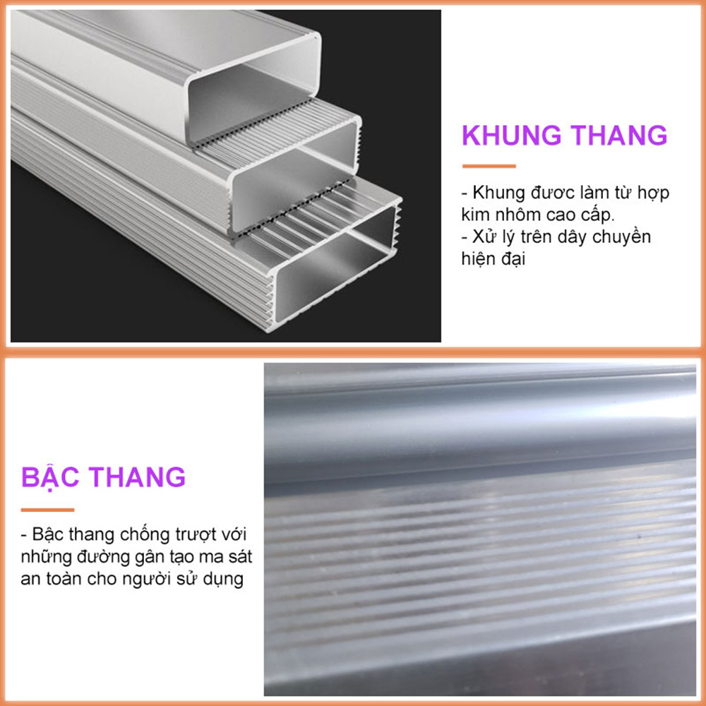 * Đặc điểm nổi bật: - Đạt tiêu chuẩn EN131 an toàn của Châu Âu. - Được thiết kế nhôm chống trượt. - Được sản xuất chất liệu nhôm với các bản lề, khóa an