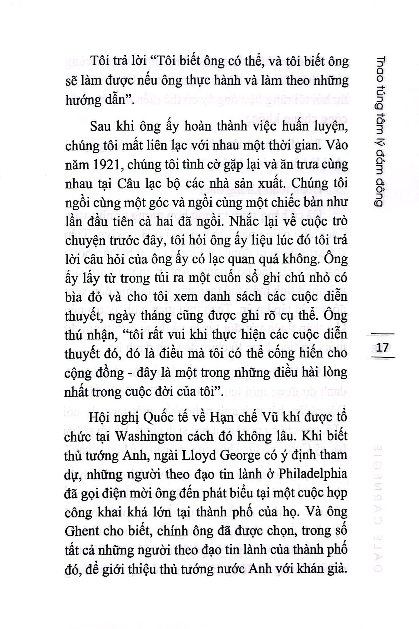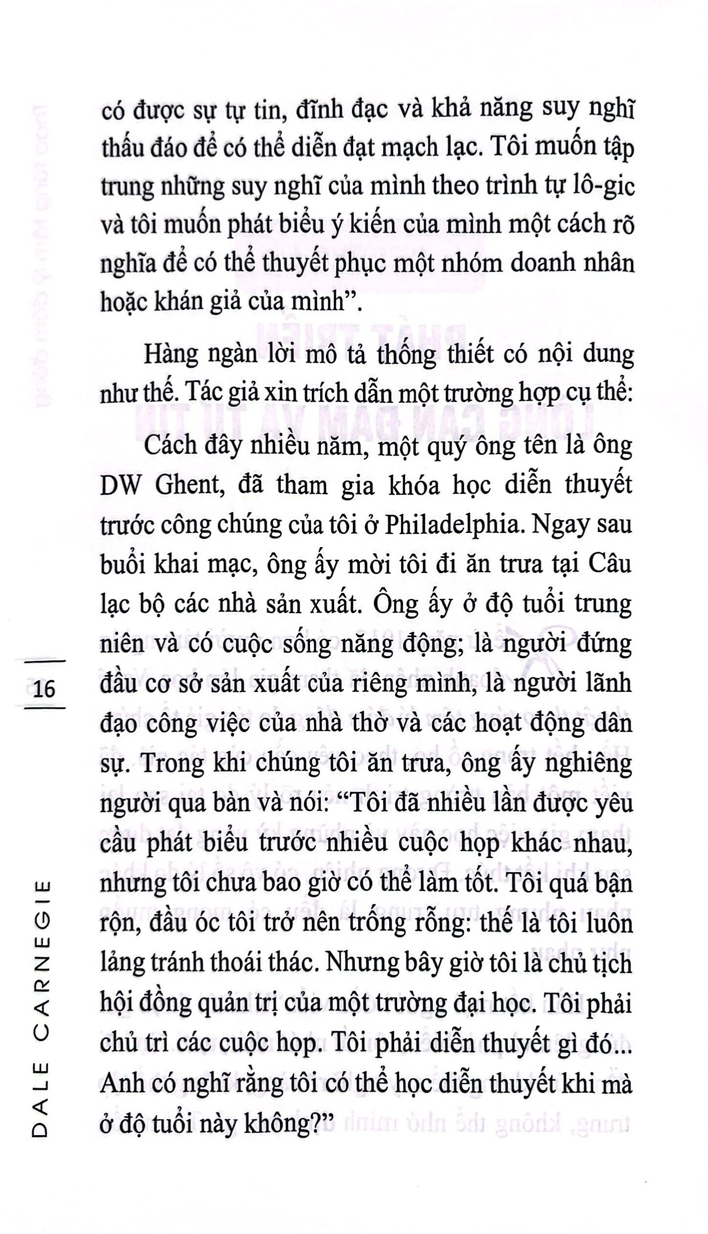 Thao Túng Tâm Lý Đám Đông GIỚI THIỆU SÁCH: THAO TÚNG TÂM LÝ ĐÁM ĐÔNG - NGHỆ THUẬT LÀM CHỦ MỌI CUỘC DIỄN THUYẾT VÀ TRỞ THÀNH NGƯỜI CẦM TRỊCH TRONG MỌI CUỘC GIAO TIẾP. Thao Túng Tâm Lý Đám Đông - Một cuốn sách xuất sắc trong sự nghiệp của Bậc thầy giao tiếp Dale Carnegie, là cuốn sách bổ trợ quan trọng cho những ai đã, đang và sẽ đọc Đắc Nhân Tâm. Cuốn sách chỉ cho chúng ta rằng, nghệ thuật giao tiếp không phải bạn nói được bao nhiêu mỹ từ, vẽ ra được bao nhiêu viễn cảnh, mà quan trọng là nếu bạn muốn lấy được nước mắt của người nghe thì bạn phải cho họ thấy được sự đau khổ chân thực, nếu bạn muốn thuyết phục ai đó tin vào luận điểm của bạn thì bạn phải sử dụng hệ thống dữ kiện thực tế và gần gũi với những người nghe ấy. Và một sai lầm đáng lưu ý mà nhiều người mắc phải là bỏ qua việc chuẩn bị trước. Làm sao người ta có thể hy vọng kiềm chế nỗi sợ hãi của những người lính phải ra trận mà không được trang bị vũ khí? Tương tự như vậy, không có gì ngạc nhiên khi diễn giả không thực sự thoải mái trước khán giả do không có sự chuẩn bị. Lincoln từng nói tại Nhà Trắng: “Tôi tin rằng tôi sẽ không bao giờ đủ tự tin để nói trước công chúng mà không có sự chuẩn bị nào cả. Tôi sẽ cảm thấy xấu hổ đến chết đi được”. Việc chuẩn bị thực sự cho một bài phát biểu có nghĩa là bạn cần tập hợp những điều được viết ra và ghi nhớ? Không, nó có nghĩa là sự tập hợp những suy nghĩ của bạn, những ý tưởng của bạn, niềm tin của bạn, những thôi thúc trong tim bạn. Với những suy nghĩ như vậy, mỗi ngày bạn nuôi dưỡng nó, ăn ngủ cùng nó, thậm chí đi cả vào giấc mơ. Trong bạn tràn ngập cảm xúc và trải nghiệm. Điều này nằm sâu trong tiềm thức của bạn như những viên sỏi trên bờ biển. Đó chính là sự chuẩn bị thực sự có ý nghĩa - là suy nghĩ, nghiền ngẫm, nhớ lại, chọn lọc những điều hấp dẫn, sau đó mài giũa chúng, biến chúng thành một bức tranh lung linh của riêng bạn. Đừng chỉ phát biểu cho qua chuyện, cho hết giờ. Một bài phát biểu cần được phát triển dựa trên lựa chọn chủ đề từ đầu tuần, và suy nghĩ về nó trong suốt những ngày còn lại của tuần đó. Nghiền ngẫm về nó, ăn ngủ và thậm chí mơ về nó. Thảo luận về nó với bạn bè. Hãy biến nó thành một chủ đề trò chuyện. Hãy tự hỏi mình tất cả các câu hỏi liên quan. Bạn cần sống cùng với câu chuyện của mình, giải pháp nó trong cuộc sống hằng ngày, như thế, bạn mới có thể thực sự làm chủ đám đông sẽ lắng nghe phía dưới.