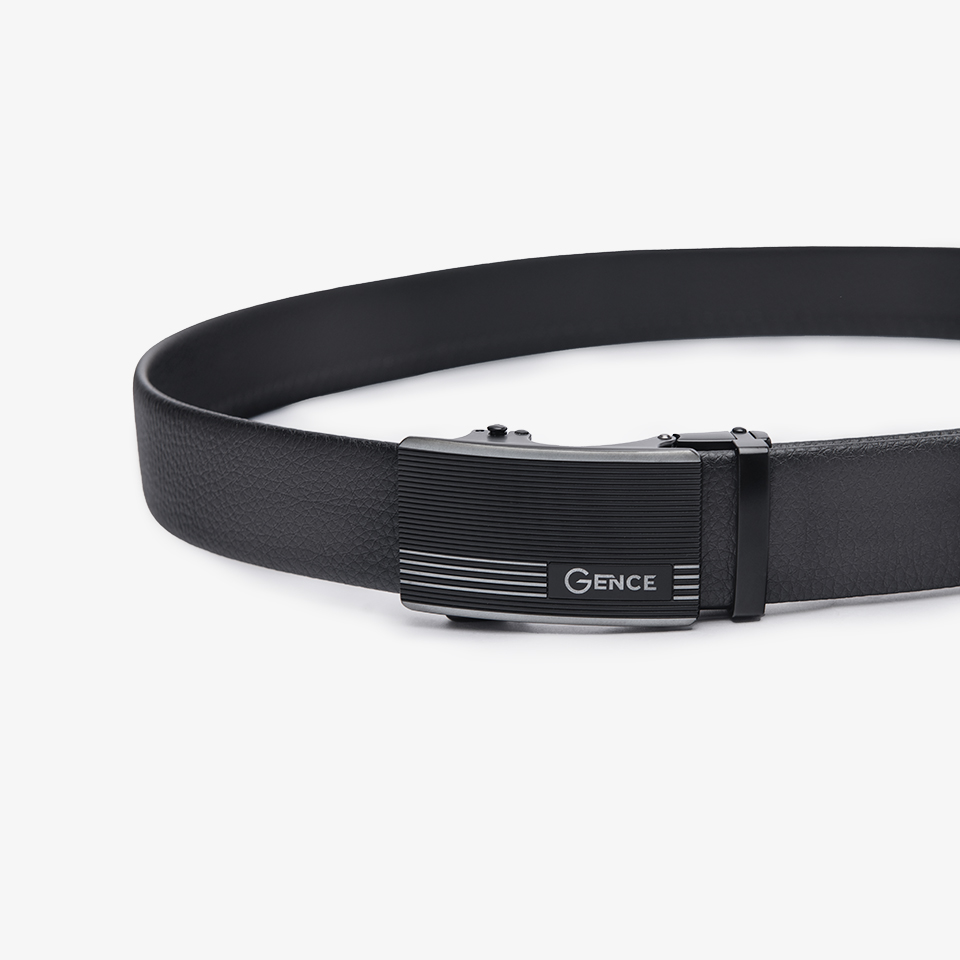 ✨Thắt Lưng Da Nam GENCE LG31 Da Bò Cao Cấp Màu Đen Viền Kim Loại Mạ Bạc
