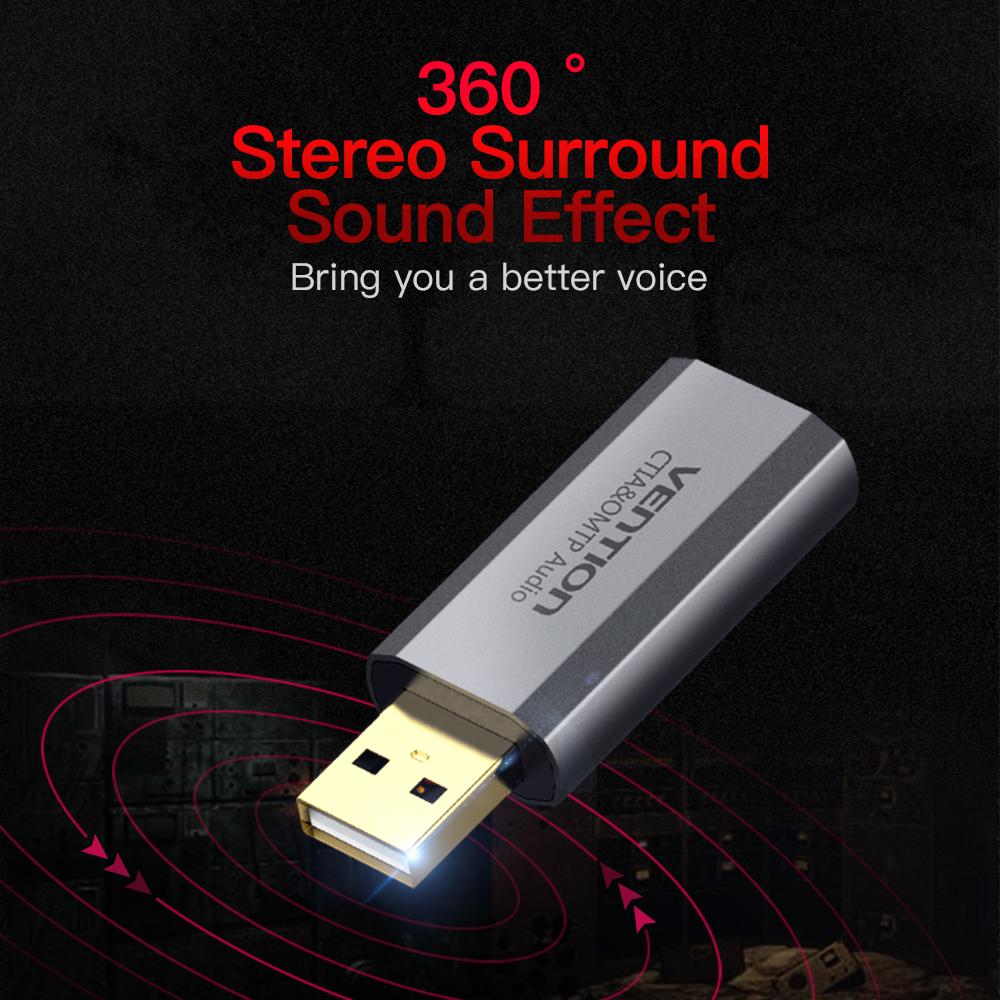 Let computer back to amazing vocal world. VENTION USB External Sound Card is a great companion of computer game. It can freely switch among 12 kinds of sound effects. It supports both international and American standard earphone.