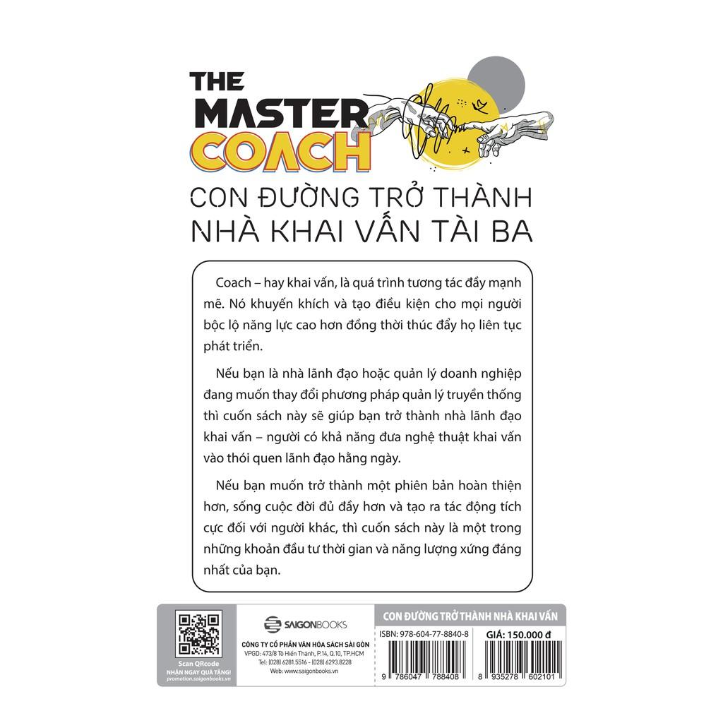 Coach - hay khai vấn, là quá trình tương tác đầy mạnh mẽ. Nó khuyến khích và tạo điều kiện cho mọi người bộc lộ năng lực cao hơn đồng thời thúc đẩy họ liên tục phát triển. The Master Coach - Con đường trở thành nhà khai vấn tài ba là một trong những cuốn sách giúp bạn có cái nhìn lạc quan về thế giới và môi trường làm việc khi mà những người lãnh đạo có thể áp dụng phương pháp Coaching để giúp nhân viên khai phá và phát huy tối đa tiềm năng của mình. The Master Coach - Con đường trở thành nhà khai vấn tài ba không chỉ mở rộng tư duy của bạn trong vai trò một nhà lãnh đạo mà còn có thể chuyển hóa cách bạn suy nghĩ và tương tác với mọi người xung quanh. Nó có sức mạnh giúp bạn xây dựng nền văn hóa doanh nghiệp trong đó toàn bộ đội ngũ lãnh đạo đều có năng lực dẫn dắt, tư vấn, đào tạo và khai vấn cho người khác một cách sâu sắc. Nếu bạn là nhà lãnh đạo hoặc quản lý doanh nghiệp đang muốn thay đổi phương pháp quản lý truyền thống thì The Master Coach - Con đường trở thành nhà khai vấn tài ba sẽ giúp bạn trở thành nhà lãnh đạo khai vấn - người có khả năng đưa nghệ thuật khai vấn vào thói quen lãnh đạo hằng ngày. Nếu bạn muốn trở thành một phiên bản hoàn thiện hơn, sống cuộc đời đầy đủ hơn và tạo ra tác động tích cực đối với người khác, thì cuốn sách này là một trong những khoản đầu tư thời gian và năng lượng xứng đáng nhất của bạn. NỘI DUNG NỀN TẢNG CỦA THE MASTER COACH - CON ĐƯỜNG TRỞ THÀNH NHÀ KHAI VẤN TÀI BA: Nội dung nền tảng của The Master Coach - Con đường trở thành nhà khai vấn tài ba gồm ba khía cạnh cốt lõi để thành thạo thuật khai vấn là: Phẩm chất, Kết nối và Đối thoại. Các chương về Phẩm chất sẽ trả lời câu hỏi quan trọng nhất: Bạn đã tích lũy đủ khả năng để khai vấn người khác chưa? Chúng ta sẽ xem xét các giá trị, tính cách và hành vi nào để người khác tin tưởng và chấp nhận bạn trở thành chất xúc tác cho hành trình phát triển của họ? Các chương về Kết nối tập trung vào những yếu tố cần thiết để xây dựng và duy trì mối quan hệ khai vấn độc đáo. Các chương về Đối thoại sẽ đưa ra một số phương pháp giúp cuộc trò chuyện giữa nhà khai vấn với khách hàng trở nên sâu sắc và linh hoạt hơn. Bạn không thực hiện khai vấn, bạn chính là khai vấn. Đó chính là thông điệp mà tác giả Gregg Thompson muốn truyền đạt.