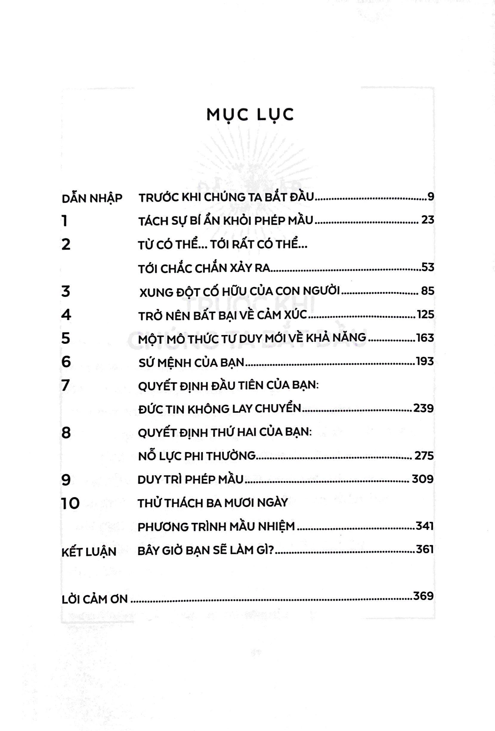 Phương trình mầu nhiệm sẽ giúp chúng ta vượt qua rào cản tâm lý này, giúp xác suất thành công của chúng ta đạt đến con số 100%, chỉ với hai quyết định đơn giản đến ngỡ ngàng: giữ vững Đức tin không lay chuyển và duy trì Nỗ lực phi thường. Đây chính là hai chiếc chìa khóa để tạo ra những phép mầu hữu hình, đo lường được, cho thấy chúng ta có thể vượt qua xung đột nội tại và cầm cương được cảm xúc của bản thân.