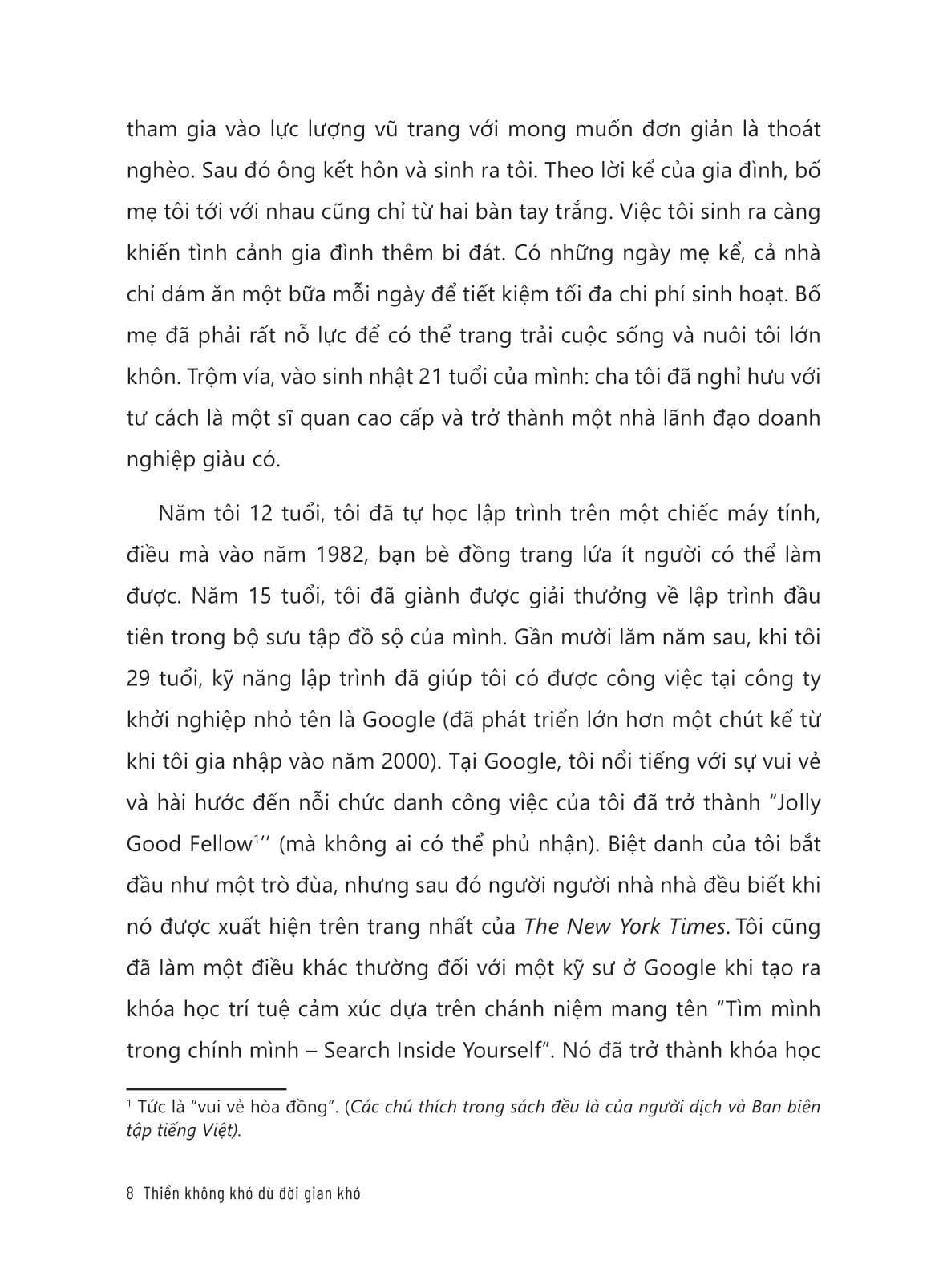 Tựa sách cũng là phần tiếp theo của “Search Inside Yourself” (Tạm dịch: “Tìm m.ình trong chính m.ình”) – đứng đầu danh sách bán chạy nhất của New York Times, dựa trên khóa học rất phổ biến mà Chade-Meng Tan thiết kế để giúp các đồng nghiệp của m.ình tại Google giảm căng thẳng và tăng cường sức khỏe tổng thể, nâng cao sự tập trung và sáng tạo, thêm phần lạc quan và kiên cường, xây dựng các mối quan hệ trọn vẹn và có được những nụ cười vui vẻ khi tham gia.
