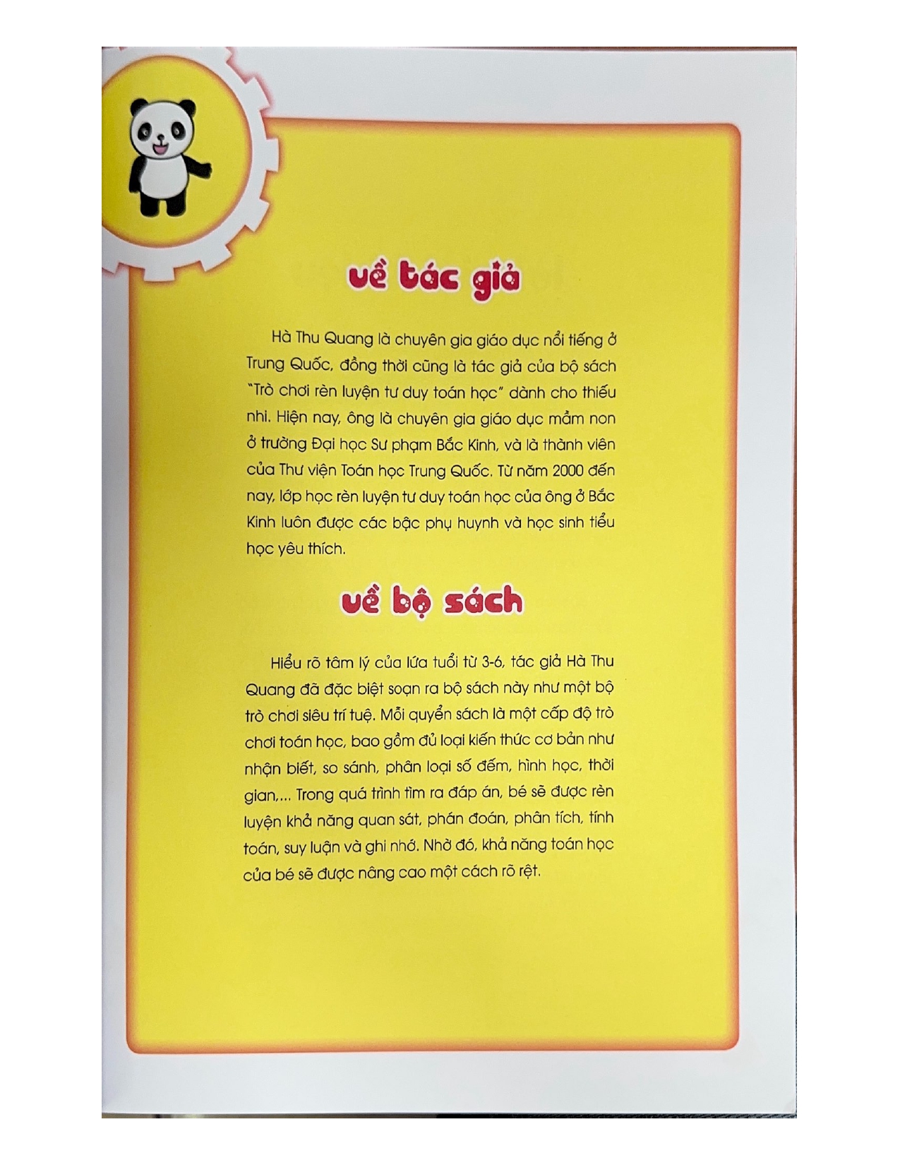 Bộ sách giúp trẻ biết so sánh, phân loại đồ vật, nhận biết các dạng hình học, không gian, thời gian, các con số và phép tính. Trẻ sẽ được gợi mở tiềm năng trí tuệ một cách tự nhiên nhất thông qua các bài tập với nhiều hình ảnh các con vật đáng yêu, trái cây giàu màu sắc, vật dụng quen thuộc hàng ngày,... Các bậc phụ huynh sẽ không khỏi ngạc nhiên khi thấy các bé làm bài tập hoài mà không biết chán!