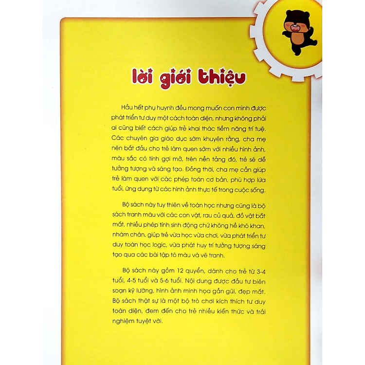 Bộ sách giúp trẻ biết so sánh, phân loại đồ vật, nhận biết các dạng hình học, không gian, thời gian, các con số và phép tính. Trẻ sẽ được gợi mở tiềm năng trí tuệ một cách tự nhiên nhất thông qua các bài tập với nhiều hình ảnh các con vật đáng yêu, trái cây giàu màu sắc, vật dụng quen thuộc hàng ngày, Các bậc phụ huynh sẽ không khỏi ngạc nhiên khi thấy các bé làm bài tập hoài mà không biết chán!