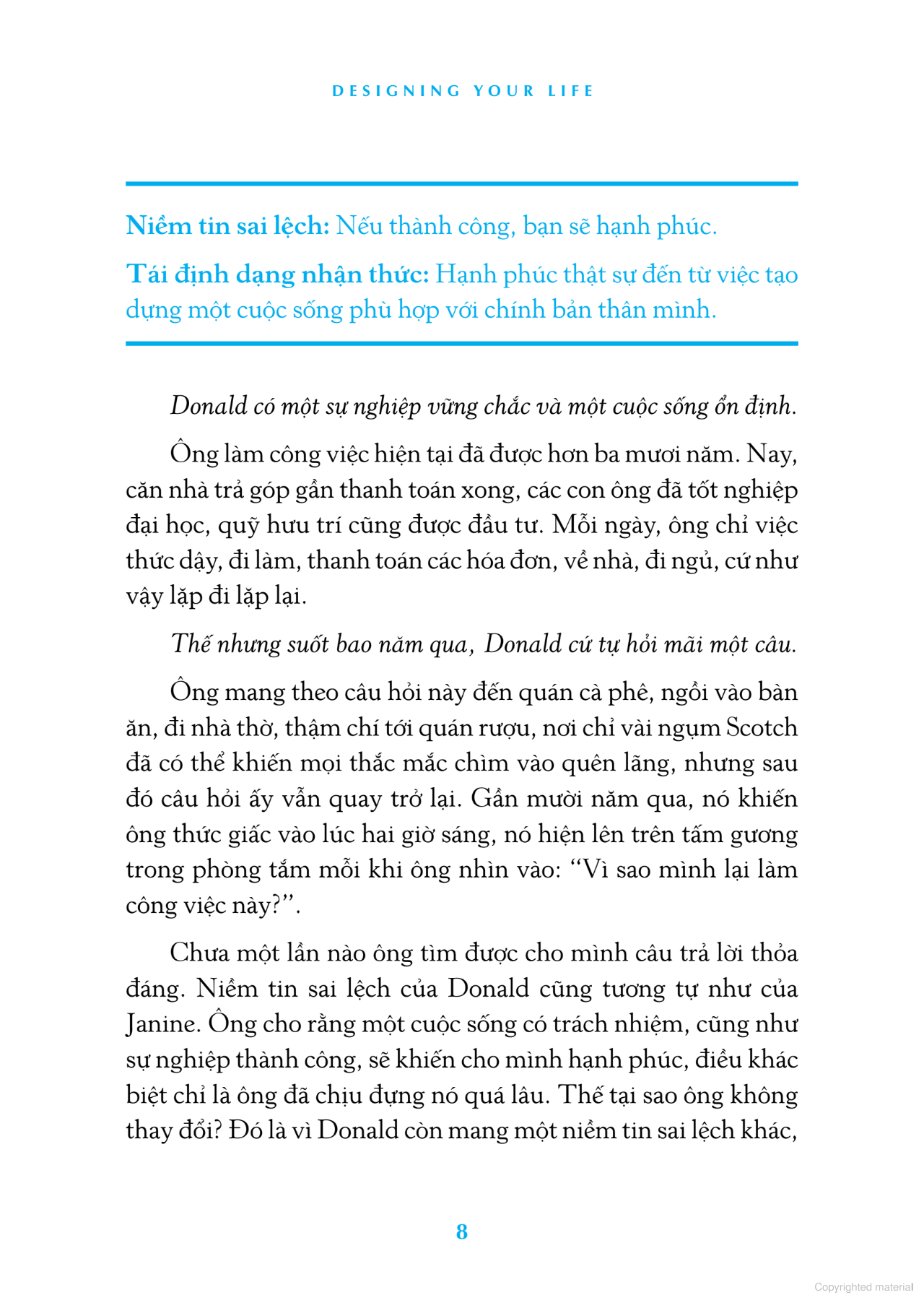 "Không quan trọng bạn là ai, làm công việc gì, đã có tuổi hay vẫn còn trẻ, bạn có thể sử dụng chính phương pháp tư duy đã tạo ra những công nghệ, sản phẩm và không gian tuyệt vời để thiết kế sự nghiệp và cuộc sống của m.ình". Bill Burnett và Dave Evans đã dạy cho hàng nghìn sinh viên Stanford về tư duy thiết kế và cách thiết kế cuộc sống. Cuốn sách lọt vào danh sách bestseller của New York Times này đã giúp rất nhiều người trên thế giới bước ra khỏi vòng lẩn quẩn của cuộc đời để sống hạnh phúc.