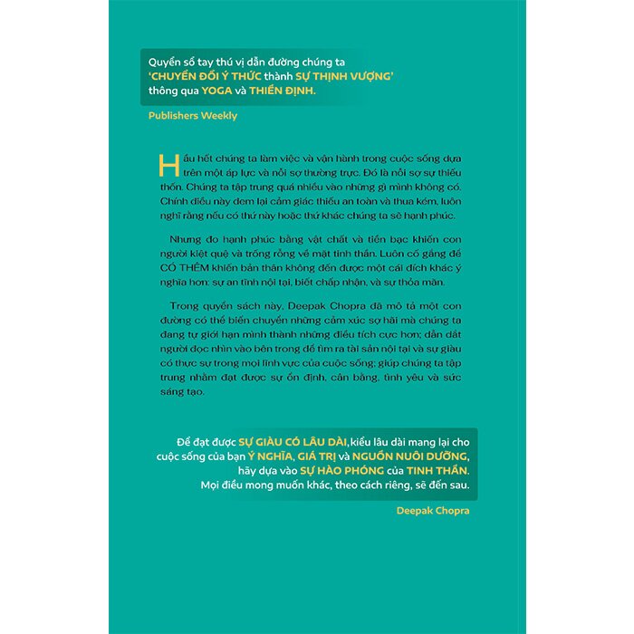 "Quyển sổ tay thú vị dẫn đường chúng ta ‘chuyển đổi ý thức thành sự thịnh vượng’ thông qua Yoga và thiền định.” - Publishers Weekly