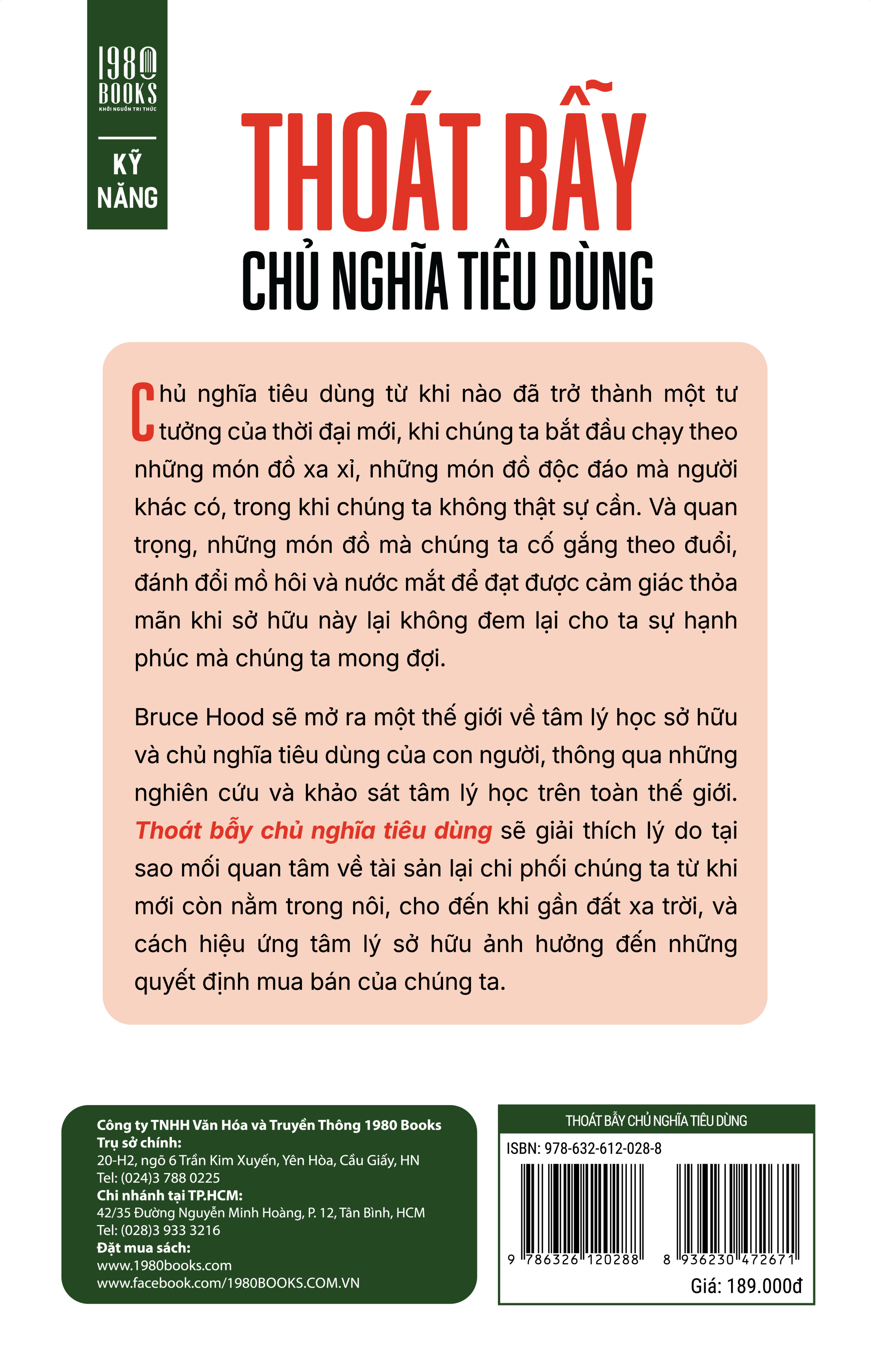 “Thoát bẫy chủ nghĩa tiêu dùng” của Bruce Hood là một cuốn sách đi sâu vào gốc rễ tâm lý chi phối hành vi tiêu dùng hiện đại, giúp độc giả hiểu vì sao chúng ta luôn muốn sở hữu nhiều hơn những gì mình cần, đồng thời gợi mở cách sống hạnh phúc và bền vững hơn trong xã hội vật chất hiện nay. USP (Unique Selling Points):  - Chủ đề mới mẻ: Khoa học tâm lý sở hữu và tiêu dùng trong đời sống hiện đại.  - Giọng văn khoa học nhưng gần gũi, dễ hiểu, nhiều ví dụ thực tiễn, phù hợp với mọi đối tượng  -  Giúp người đọc học cách quản trị ham muốn tiêu dùng, hướng đến tối giản, sống vừa đủ và bền vững  -  Phù hợp bối cảnh xã hội quan tâm đến tối giản, tài chính cá nhân, bảo vệ môi trường, phát triển bền vững. Độc giả tiềm năng:  - Người trẻ, dân văn phòng muốn quản lý tài chính cá nhân và tối giản cuộc sống.  - Độc giả quan tâm đến phát triển bản thân, quản trị thói quen tiêu dùng, tối ưu tài chính và tư duy độc lập.  - Phụ huynh, giáo viên, người làm giáo dục mong muốn hướng dẫn con cái nhận thức đúng về giá trị vật chất.  - Người quan tâm đến các vấn đề xã hội và môi trường liên quan đến lối sống tiêu dùng hiện đại. “Thoát bẫy chủ nghĩa tiêu dung” không chỉ bàn về thói quen tiêu dùng của con người hiện đại, mà đi sâu phân tích tâm lý sở hữu đã định hình hành vi con người từ thuở sơ khai cho đến xã hội tiêu dùng toàn cầu hôm nay. Chúng ta đang sống trong một thế giới nơi việc sở hữu tài sản được xem là thước đo của thành công, của hạnh phúc, của danh tính cá nhân, nhưng chính điều đó lại trở thành chiếc bẫy vô hình khiến con người bị cuốn vào cuộc đua vô tận. Thông qua những nghiên cứu và khảo sát tâm lý học khắp thế giới, Bruce Hood lý giải tại sao ham muốn sở hữu tài sản đã gắn chặt vào tâm trí con người từ khi còn là trẻ nhỏ, cách các nền tảng xã hội, lịch sử và kinh tế bồi đắp chủ nghĩa tiêu dùng và khiến chúng ta luôn khao khát nhiều hơn những gì thực sự cần. Tác giả bóc tách các hiện tượng tưởng chừng rất đời thường như việc bảo vệ chiếc xe hơi, tích trữ tài sản, hay cảm giác thất vọng khi không có những món đồ người khác đang sở hữu để cho thấy việc sở hữu không chỉ là vấn đề vật chất, mà còn là vấn đề tâm lý sâu xa, gắn với danh tính và cảm giác an toàn của mỗi người. Cuốn sách không nhằm phủ nhận giá trị của tài sản, mà giúp người đọc hiểu cảm giác hạnh phúc thật sự không đến từ số lượng tài sản sở hữu, mà từ khả năng quản lý ham muốn tiêu dùng để sống cuộc đời có giá trị và bền vững hơn. Thông qua các ví dụ thực tế, từ những tranh chấp kỳ lạ như việc giành quyền sở hữu một bàn chân giả, cho tới những câu chuyện lịch sử về các cuộc khủng hoảng tài chính và biến đổi khí hậu, Bruce Hood khéo léo dẫn dắt để người đọc nhận ra mối liên hệ chặt chẽ giữa tiêu dùng cá nhân và sự bền vững của xã hội. Trong bối cảnh toàn cầu đang đối mặt với khủng hoảng môi trường, bất bình đẳng xã hội và lối sống tiêu dùng thiếu kiểm soát, cuốn sách này không chỉ là một lời cảnh tỉnh mà còn là hướng dẫn thực tiễn để người đọc bước ra khỏi chiếc bẫy của chủ nghĩa tiêu dùng, học cách sống vừa đủ, trân trọng giá trị thực sự của cuộc sống, và bảo vệ những giá trị bền vững hơn cho thế hệ tương lai. Với giọng văn khoa học nhưng gần gũi, “Thoát bẫy chủ nghĩa tiêu dùng” phù hợp cho bất kỳ ai quan tâm đến quản trị tài chính cá nhân, tư duy tối giản, phát triển bền vững và hiểu rõ bản thân trong mối quan hệ với thế giới vật chất, đặc biệt trong bối cảnh hiện đại, nơi mọi lời mời gọi mua sắm đều hứa hẹn hạnh phúc, trong khi chính chúng lại là nguyên nhân sâu xa của lo âu và bất ổn. Về tác giả Bruce Hood là giáo sư tâm lý học tại Đại học Bristol, Anh, chuyên nghiên cứu sâu về tâm lý nhận thức và tâm lý sở hữu của con người. Ông được biết đến qua nhiều công trình nghiên cứu về cách con người hình thành và duy trì niềm tin cũng như cách các yếu tố tâm lý chi phối hành vi cá nhân và tập thể. Phong cách viết của Bruce Hood dễ tiếp cận, giàu ví dụ thực tế, kết hợp hài hòa giữa kiến thức khoa học và những câu chuyện đời sống, giúp người đọc dễ dàng nắm bắt những vấn đề phức tạp một cách logic và gần gũi.