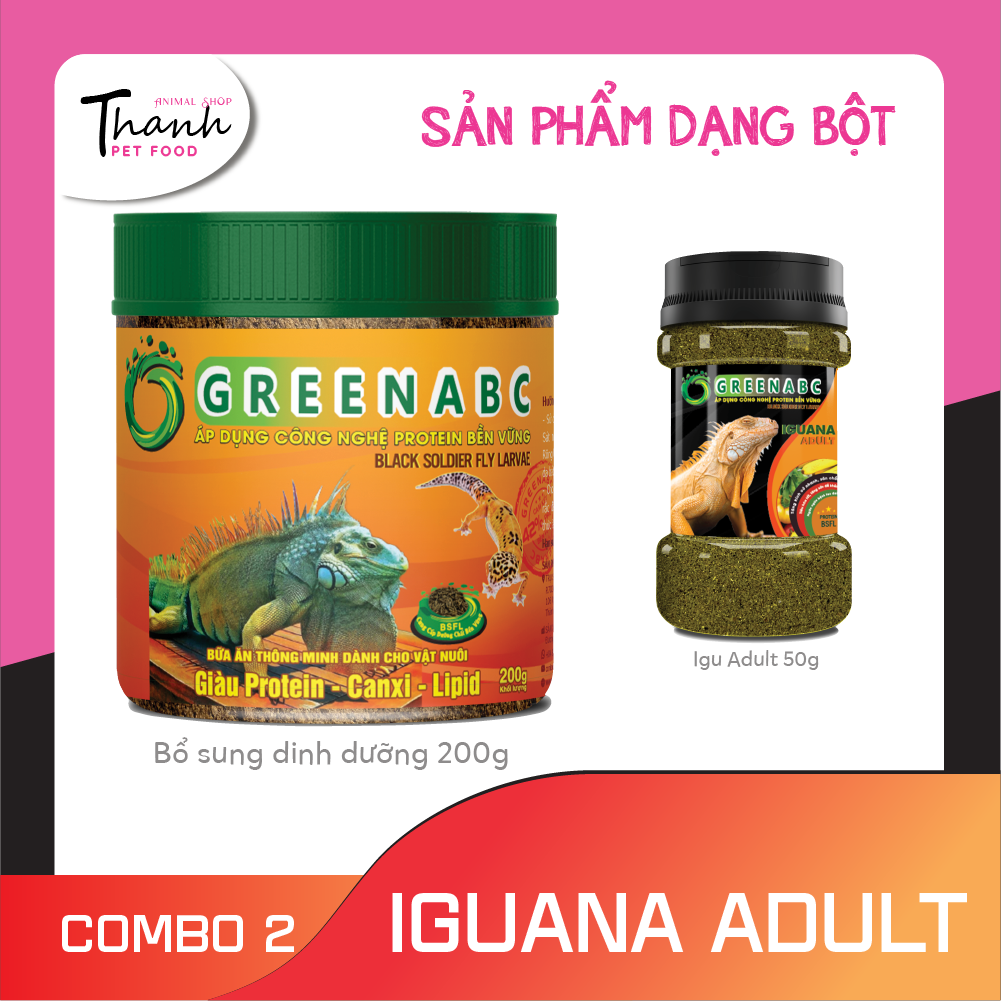 GREENABC - THỨC ĂN IGUANA TRƯỞNG THÀNH - Rồng Nam Mỹ trưởng thành từ 1m trở lên GREENABC là thức ăn cao cấp dành cho Iguana Trưởng Thành - Rồng Nam Mỹ Trưởng Thành. Đặc