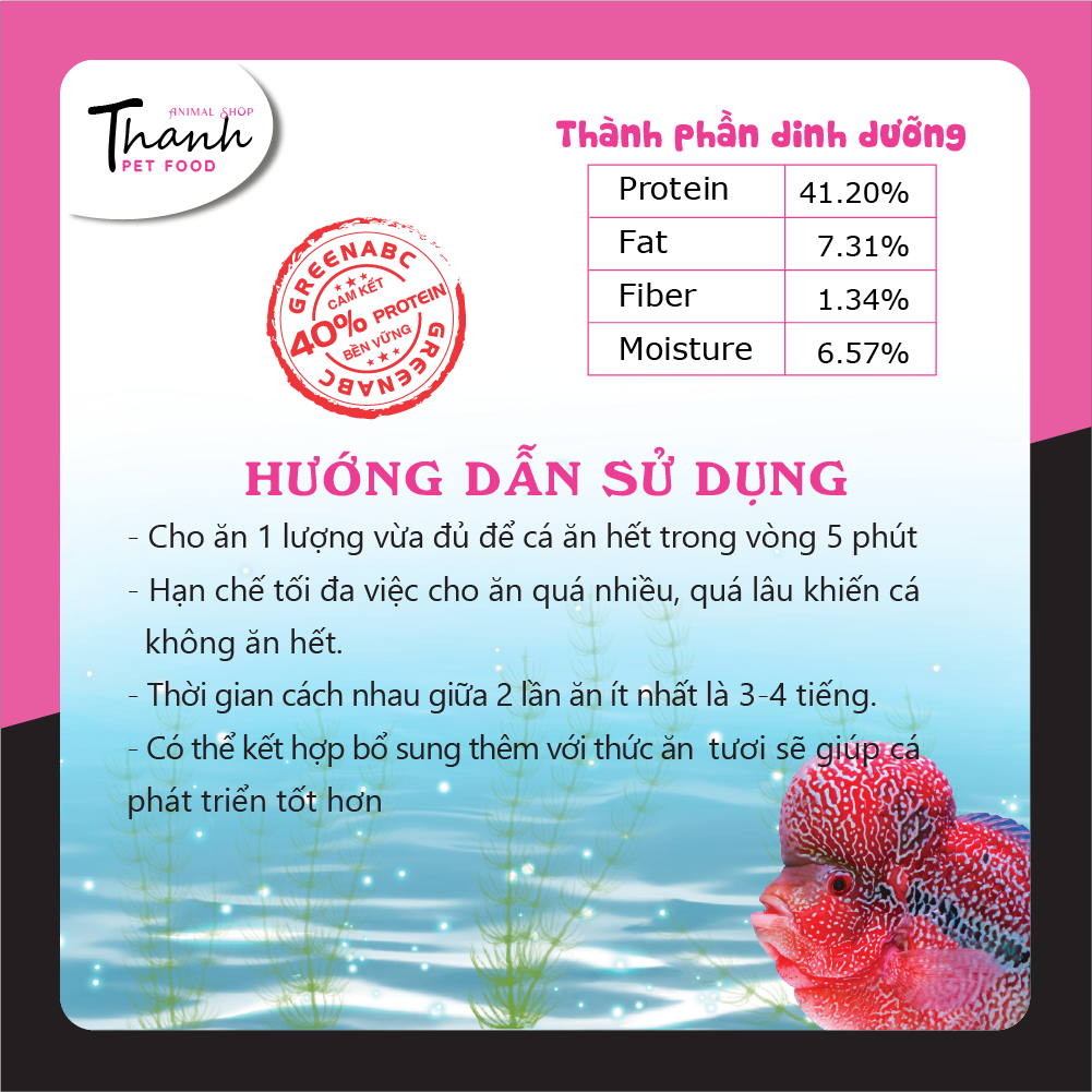 Sản phẩm GREENABC cung cấp các giá trị dinh dưỡng bền vững cho thú cưng, giúp cho Cá La Hán: