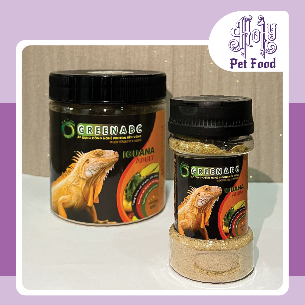 THỨC ĂN BÒ SÁT - BỔ SUNG DINH DƯỠNG PROTEIN, CANXI, LIPID GREENABC là thức ăn cao cấp dành cho các loại bò sát: IGUANA, BEARDED DRAGON, LEOPARD GECKO. Đặc biệt sản phẩm GREENABC được