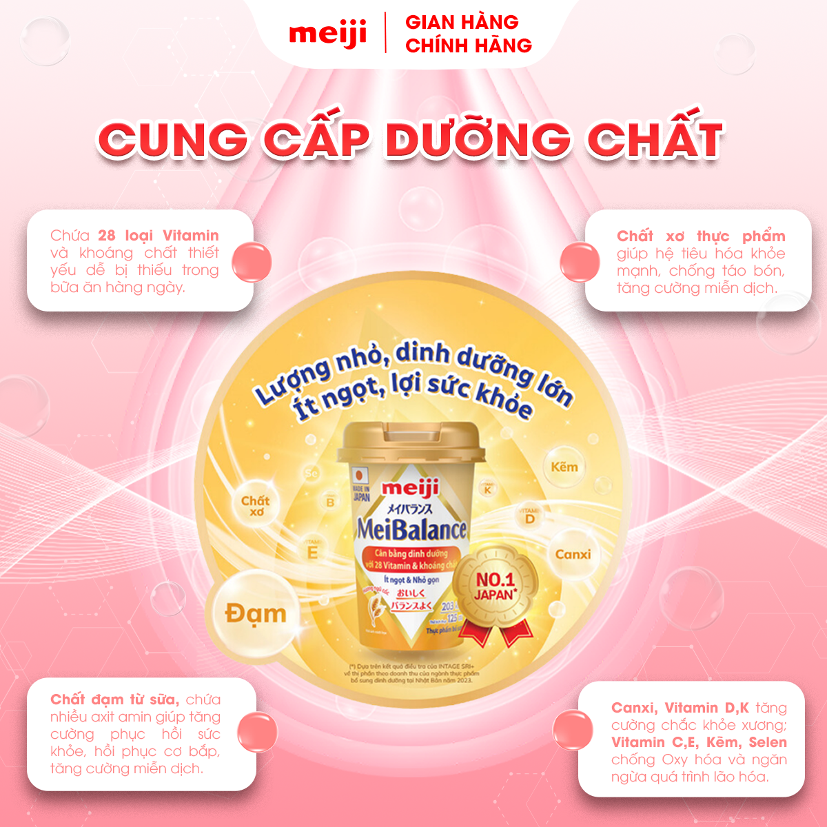 Thực Phẩm Bổ Sung Meiji MeiBalance 125ml "Lượng nhỏ - Dinh dưỡng lớn - Ít ngọt - Lợi sức khỏe" THÔNG TIN SẢN PHẨM