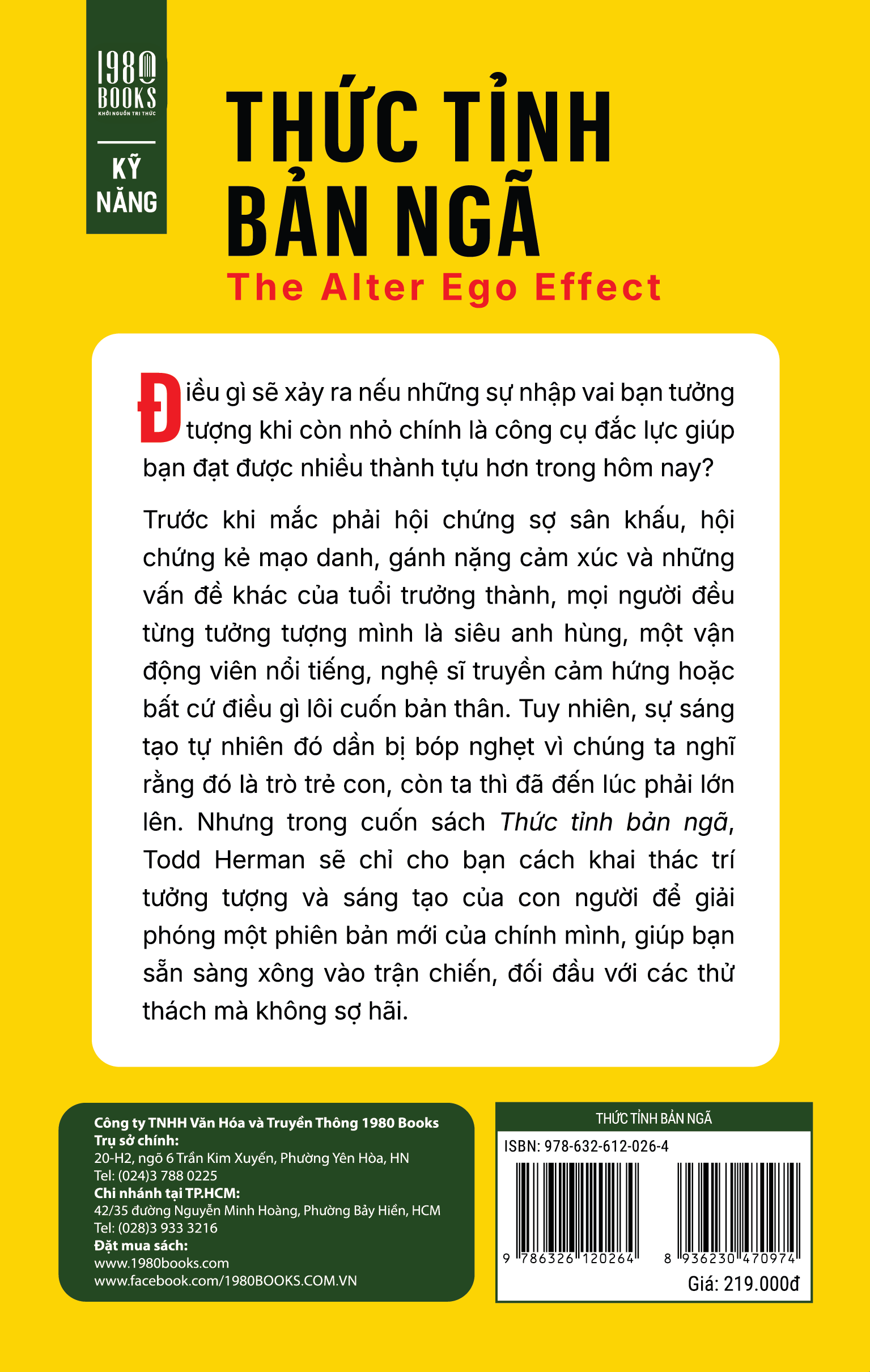 Trong cuốn sách “Thức tỉnh bản ngã”, tác giả Todd Herman - nhà huấn luyện hiệu suất đã đồng hành cùng hàng ngàn vận động viên, CEO và nghệ sĩ - tiết lộ một chiến lược tâm lý độc đáo: tạo ra alter ego (bản ngã thay thế). Đây là phương pháp tâm lý học đã được chứng minh hiệu quả, giúp chúng ta vượt qua sự nghi ngờ bản thân, những suy nghĩ tiêu cực và bất an đang kìm hãm năng lực, qua đó giúp mỗi cá nhân trở thành phiên bản tốt nhất của chính mình.