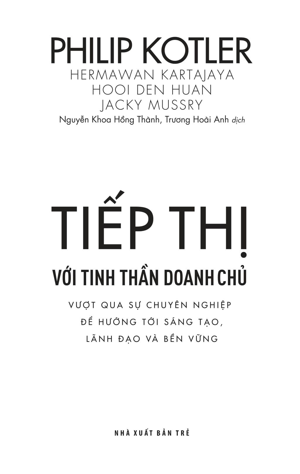 Trong “Tiếp thị với tinh thần doanh chủ”, một đội ngũ các nhà lãnh đạo tiếp thị nổi tiếng, trong đó có “cha đẻ của tiếp thị hiện đại” là Giáo sư Philip Kotler, đã đưa ra một định nghĩa mang tính đột phá và sâu sắc: đó là tiếp thị với tinh thần doanh chủ. Trong cuốn sách này, một số nhà tư duy sáng tạo nhất trong ngành tiếp thị đã khám phá những sáng kiến ngày càng cần thiết để xây dựng những khả năng mới, bứt phá khỏi cách tiếp cận tiếp thị truyền thống, đồng thời xem xét tác động của kết nối kỹ thuật số đối với người tiêu dùng và doanh nghiệp trên toàn cầu. Cuốn sách cũng thảo luận về những gì các nhà tiếp thị cần làm để phá vỡ sự trì trệ của các phương pháp tiếp thị theo khuôn khổ cũ kỹ, nay đã không còn hiệu quả trong việc đáp ứng môi trường kinh doanh năng động.