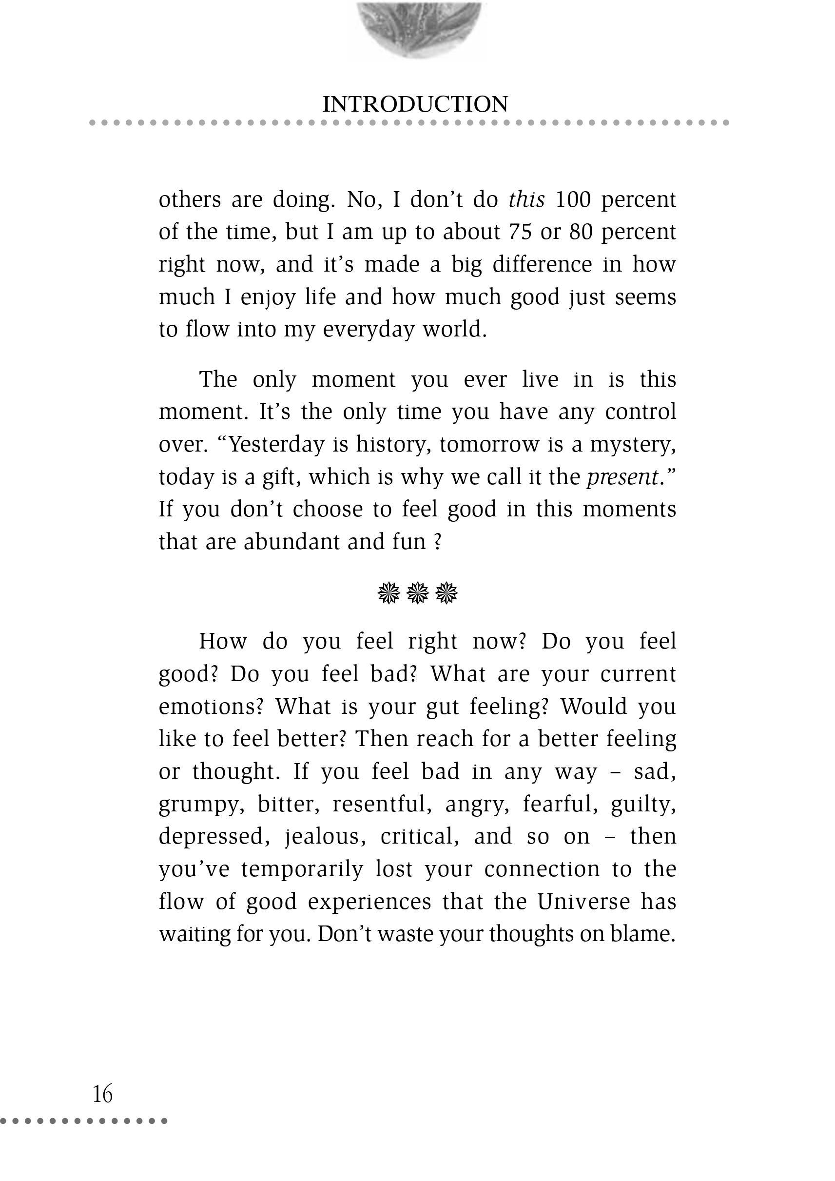 Khoảnh khắc bạn đang thực sự sống chính là khoảnh khắc của hiện tại. Đó là thời điểm duy nhất mà bạn có quyền và có thể kiểm soát mọi thứ. “Ngày hôm qua đã là lịch sử, ngày mai vẫn còn là điều bí ẩn, chỉ có hôm nay mới là một món quà, đó là lý do vì sao chúng ta gọi hiện tại là quà tặng của cuộc sống.” Hãy bắt đầu bằng cách cảm nhận những điều tốt đẹp ngay vào lúc này, bạn sẽ có được những giây phút tươi sáng và tràn đầy niềm vui trong tương lai.