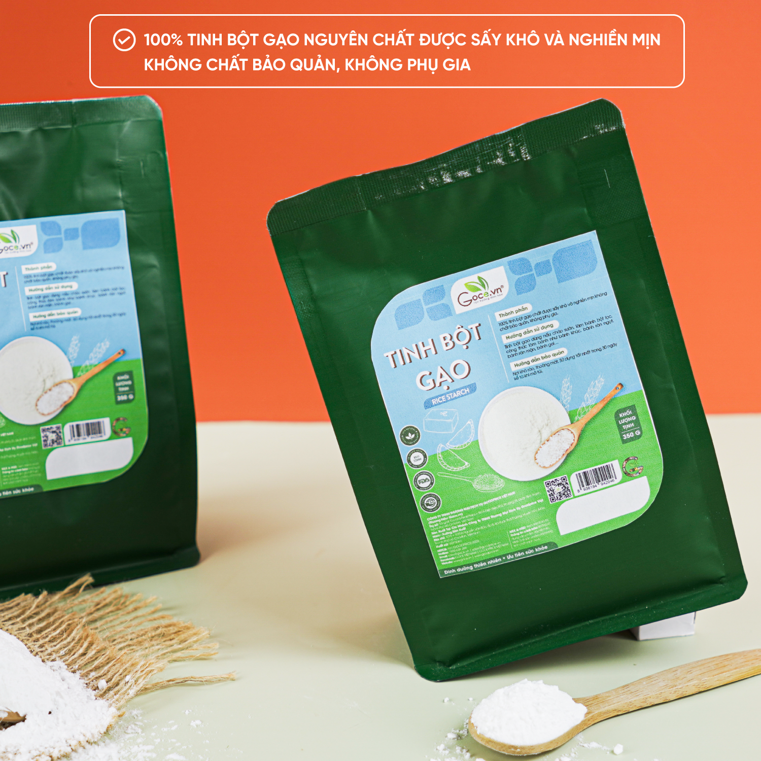 THÔNG TIN SẢN PHẨM TINH BỘT GẠO - Khối lượng: 350g. - Thành phần: 100% Nguyên chất từ hạt gạo Miền Tây chiết được xuất thành dạng tinh bột, không chất bảo quản, không phụ