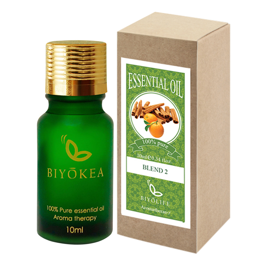 Tên Sản Phẩm: Tinh dầu hỗn hợp 2 Tên Tiếng Anh: Blend 2 Essential Oil Đặc điểm: - Dung tích: 10ml, 50ml, 100ml - Thành phần: cam, vỏ quế -Thương hiệu: Biyokea -