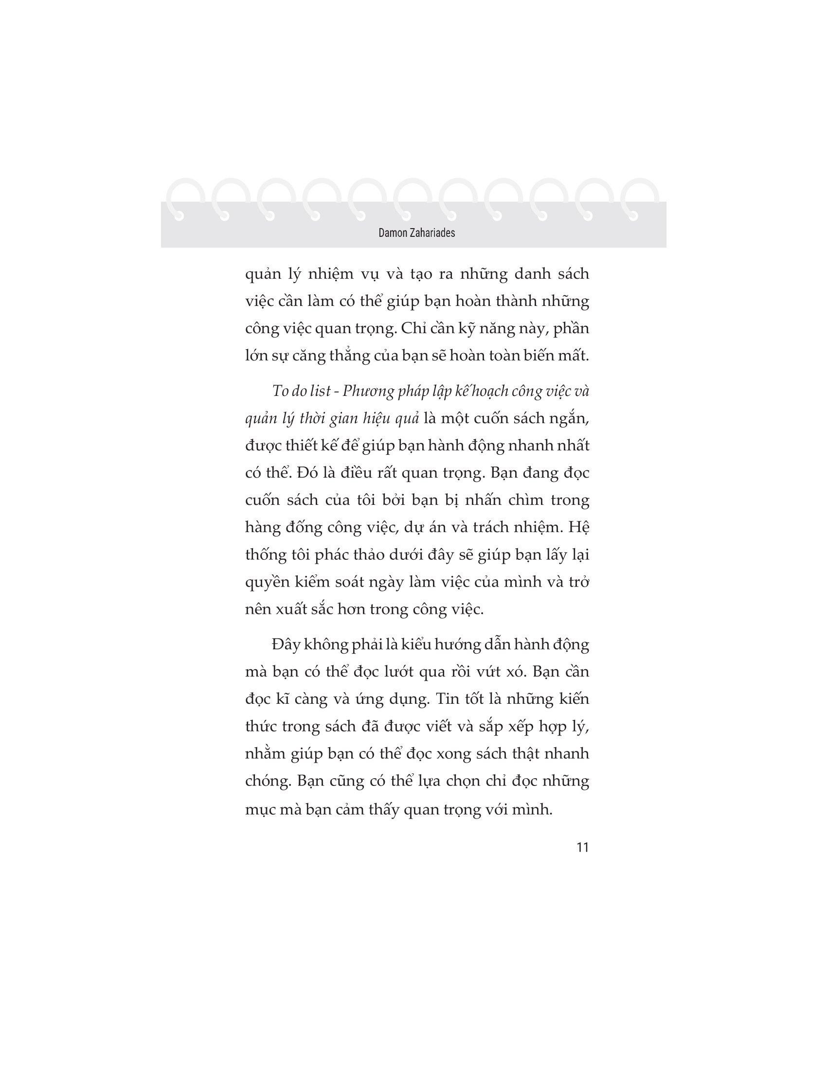 - Cách duy trì trơn tru hệ thống quản lý nhiệm vụ của riêng bạ và nhiều điều thú vị khác xoay quanh đề tài quản lý thời gian và tối ưu năng suất làm việc! Nếu như bạn đã mệt mỏi hết ngày này sang ngày khác vì không thể xử lý tốt những công việc cứ ngày càng chồng chất, bây giờ chính là lúc thay đổi. Hãy tìm ra chiến lược đúng đắn để sắp xếp cuộc đời m.ình, tận hưởng niềm vui khi năng suất tăng lên, stress biến mất và có thêm nhiều thời gian tự do để làm những điều m.ình yêu thích! Về tác giả: Damon Zahariades là chuyên gia về năng suất, Damon đã dành nhiều năm ở Corporate America, sở hữu một công ty về tiếp thị nội dung của riêng m.ình và tạo ra các hướng dẫn hành động để giúp mọi người tăng năng suất công việc.