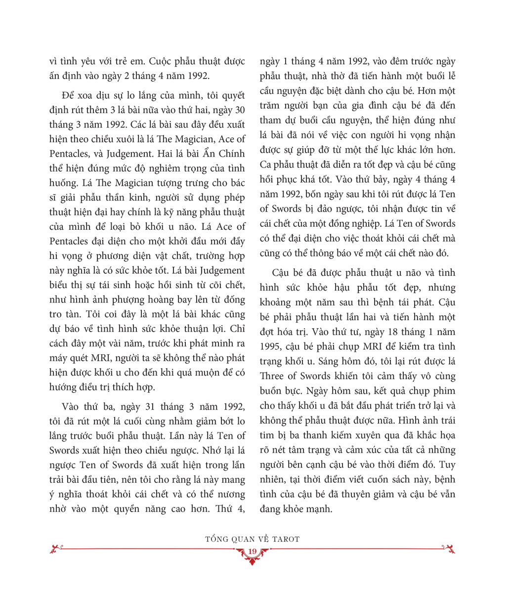Và bây giờ, mời bạn tiếp tục đọc cuốn sách và tận hưởng quá trình tìm hiểu những bí mật của Tarot. Chúc bạn thật nhiều may mắn trên hành trình đến với Tarot!