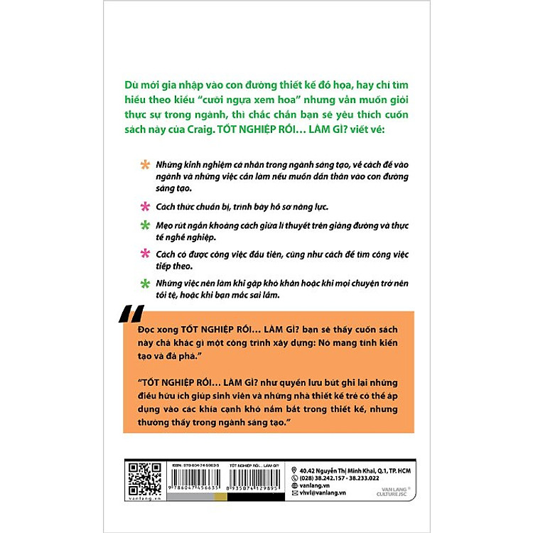 Dù mới gia nhập vào con đường thiết kế đồ họa, hay chỉ tìm hiểu theo kiểu “cưỡi ngựa xem hoa” nhưng vẫn muốn giỏi thực sự trong ngành, thì chắc chắn bạn sẽ yêu thích cuốn sách này của Craig. TỐT NGHIỆP RỒI… LÀM GÌ? viết về:
