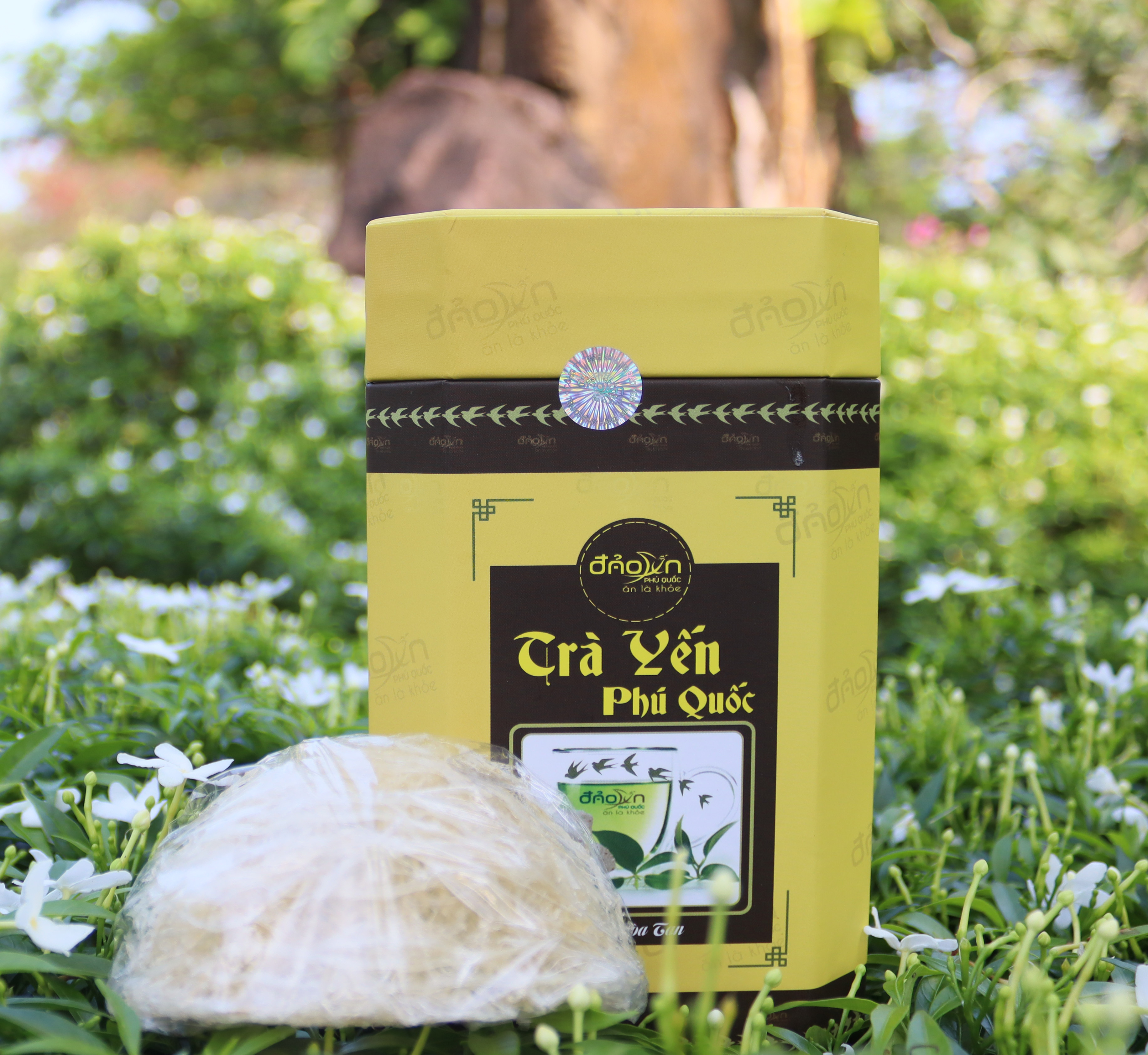 - Trà Yến Phú Quốc là gì? Trà yến phú quốc là đặc sản thơm ngon, bổ dưỡng của đảo Ngọc. Được kết hợp chủ yếu từ bột hương yến và bột trà xanh với tỷ lệ vàng tạo nên một mùi thơm nhẹ nhàng, kích thích vị giác, tăng sảng khoái tinh thần. Giúp giải nhiệt vào những ngày nắng nóng và nâng cao sức đề kháng.