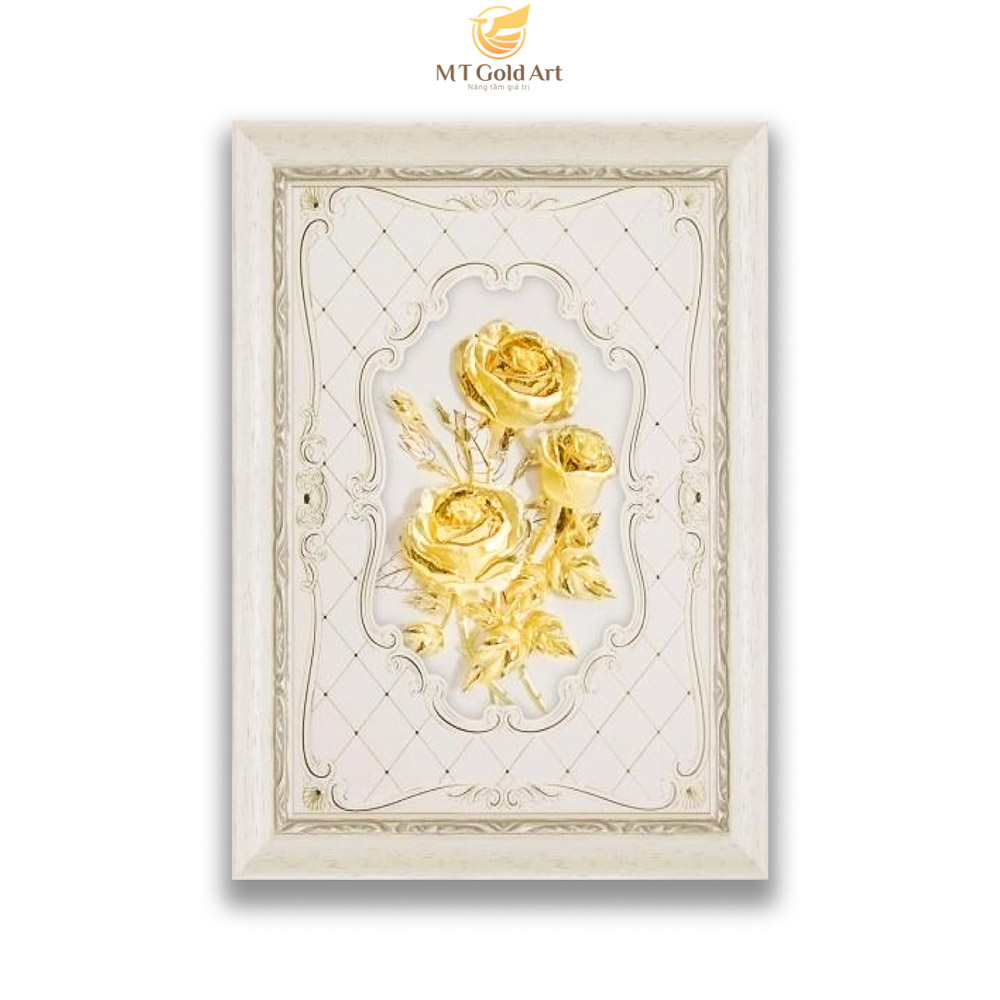 Hoa hồng được coi là nữ hoàng của các loài hoa. Trong ngày lễ tình nhân hay mỗi dịp kỉ niệm tình yêu, hoa hồng là một món quà không thể thiếu. Và đặc biệt hơn nữa nếu bạn tặng người yêu một bức tranh hoa hồng dát vàng. Món quà như một thông điệp rằng tình yêu anh dành cho em hay em dành cho anh là vĩnh cửu.