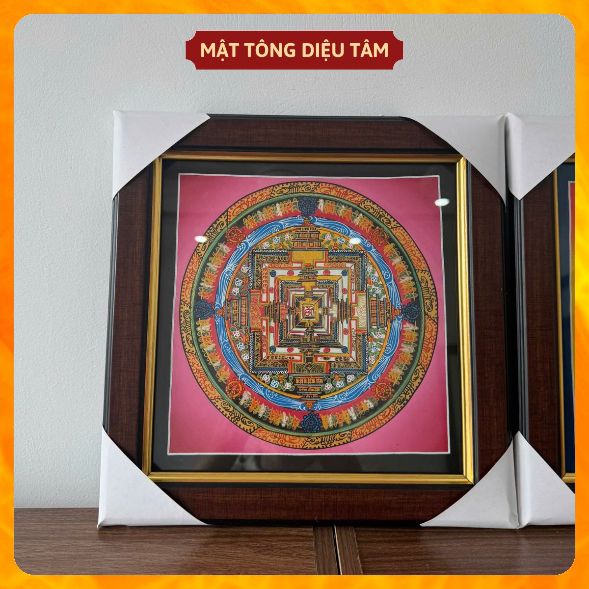 ✨Tranh Mandala Kalachakra chú OM Nepal 27cm có khung kính tranh Kim cang họa sư vẽ tay thủ công (ngẫu nhiên) Mật tông Diệu Tâm