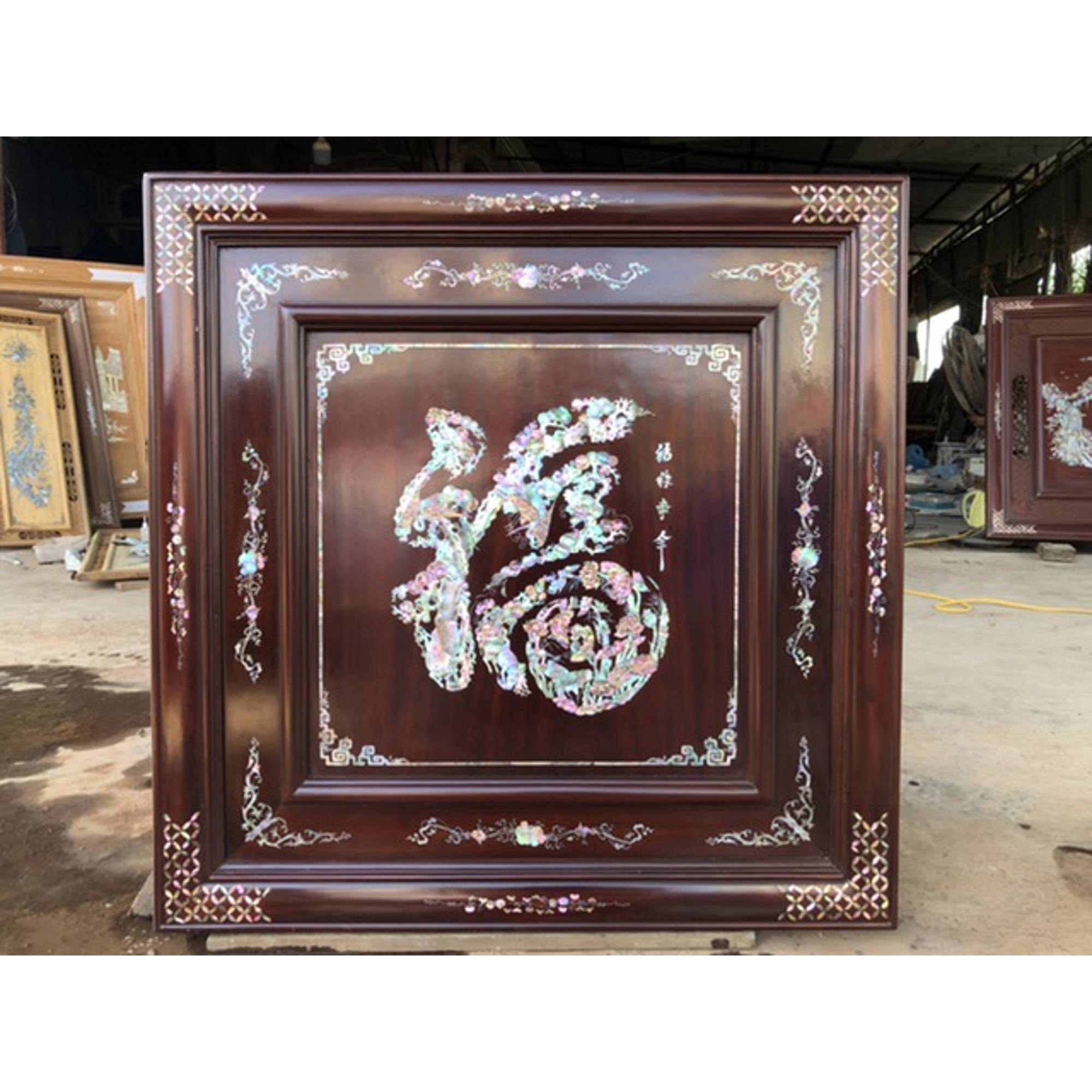 ✨Tranh treo tường gỗ gụ chữ phúc khảm trai ốc kt 81×81×4cm
