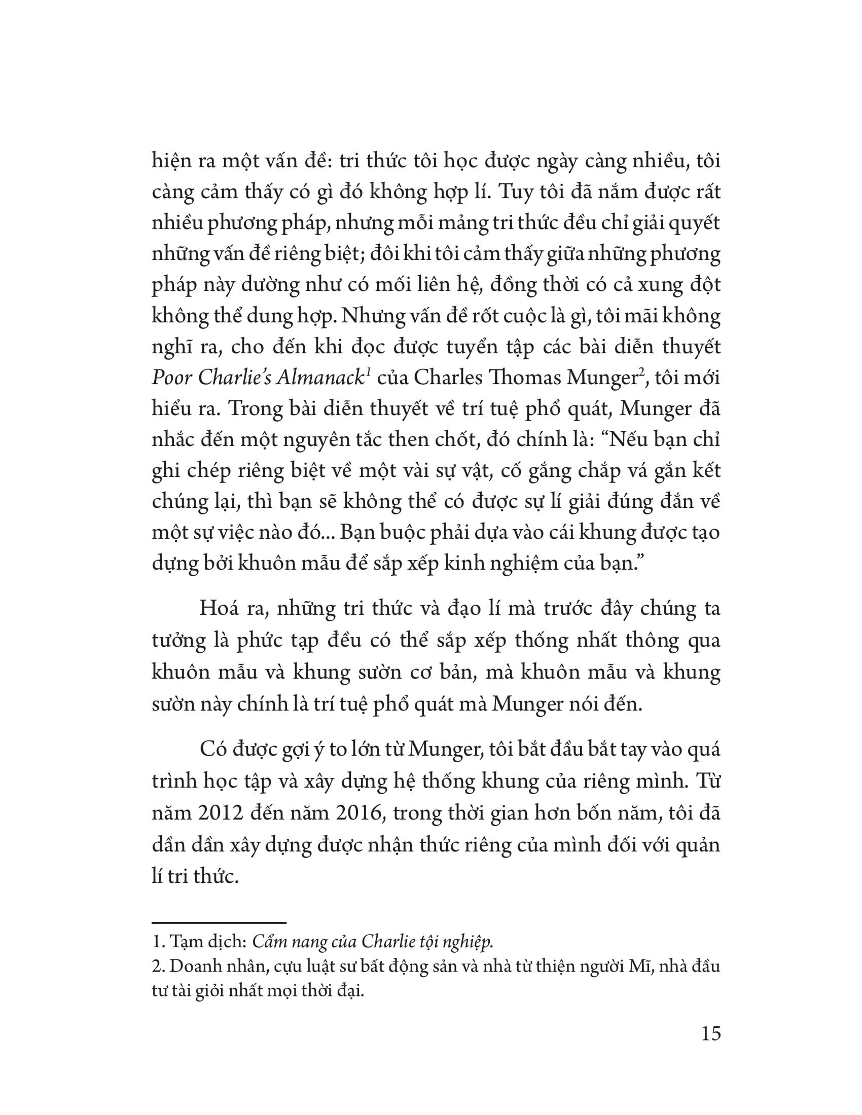 Có một vấn đề là phần lớn chúng ta dù biết đến những “tri thức cực hạn” nhưng khi gặp khó khăn vướng mắc lại bỏ qua, xem thường những quy luật cơ bản và phạm vào những sai lầm thông thường nhất. Chỉ những người thành công áp dụng những quy luật đó mới có thể đưa ra phán đoán chính xác, tìm ra cách thức để giải quyết mọi thử thách trong công việc và cuộc sống.