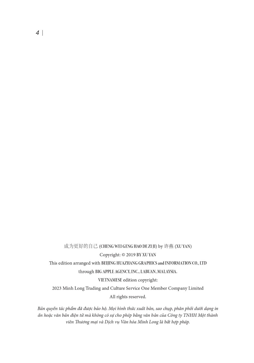 Mong rằng sau khi đọc xong cuốn sách "Trở thành phiên bản tốt hơn của chính mình" bạn có thể nắm vững những kiến thức về tâm lí học nhân cách, từ đó tăng thêm sức hấp dẫn trong nhân cách và vẽ nên bức tranh cuộc sống tươi đẹp nhất của bạn .
